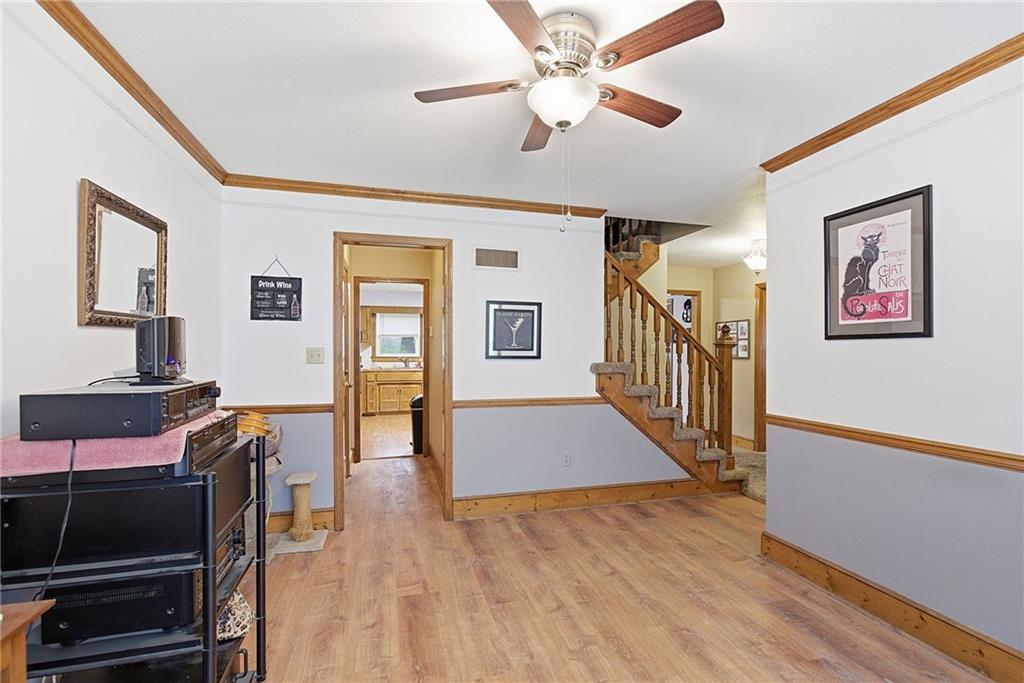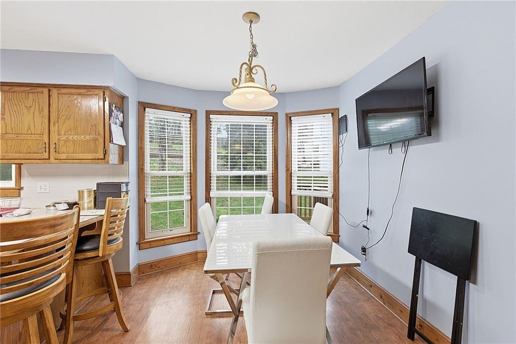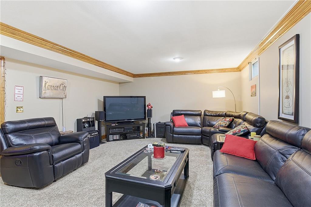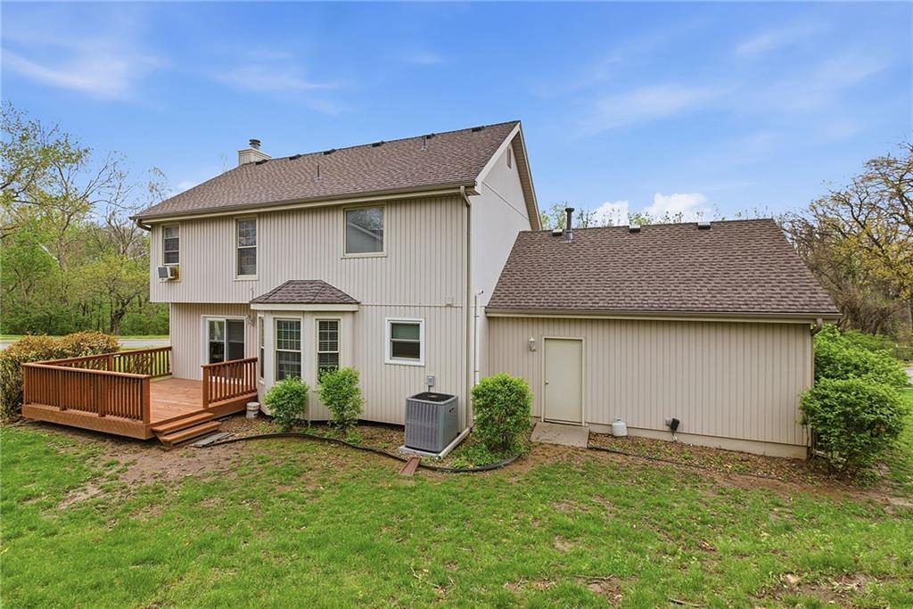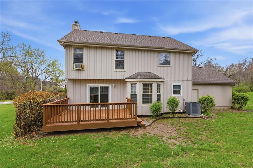 Wonderful 2 story family home with great room and family room in basement. Four bedrooms with one in basement with bath. Super wrap around convered front porch and rear deck for those family get togethers. Maintenance free vinyl siding, sprinkler system, and large kitchen with breakfast room. Second floor laundry, good storage in basement, lots of space for you to enjoy. Close to NKC hospital, downtown and trafficways. Super North Kansas City schools.