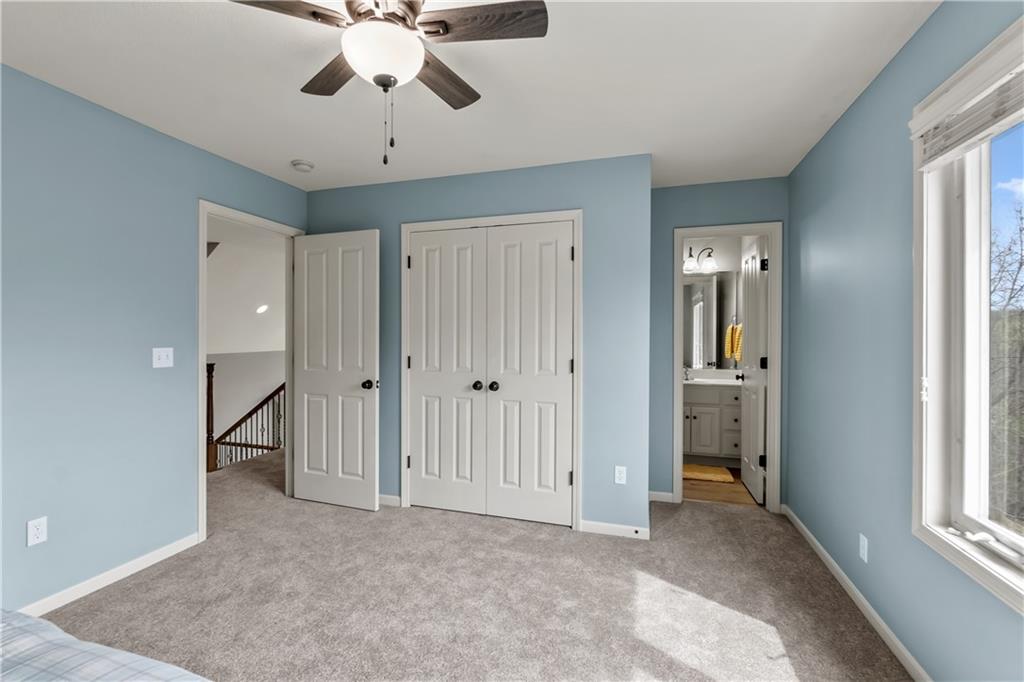 Welcome to this stunning 1.5-story home on an incredible lot with breathtaking views of green space and a scenic creek valley. Filled with natural light from dramatic picture windows, this beautifully updated home offers an open main level perfect for everyday living and entertaining. The formal dining room offers flexibility for use as a home office or formal sitting room. The main-floor primary suite is a true retreat, featuring serene backyard views, a spacious ensuite bath, and an oversized walk-in closet connected to the laundry room. Upstairs features three generously sized bedrooms, two additional bathrooms, and a large loft space. The recently finished walkout lower level is exceptional, offering an incredible rec room, cozy fireplace, custom wet bar with two beverage fridges and a dishwasher, an upgraded full bath with rainfall shower, an additional bedroom, and ample unfinished storage. Thoughtful extras include high-end theater speakers, dimmable lighting w/Nightlight feature, and smart home upgrades throughout. Step outside to your private backyard oasis with a level fenced yard overlooking peaceful green space. The large deck and expansive patio are perfect for relaxing or entertaining. Major updates include a high-efficiency HVAC (2021), upgraded 50-year roof with oversized gutters and gutter guards (2024), new water heater (2025), new carpet (2026), full interior repaint, updated faucets, engineered retaining wall, new fence, Wi-Fi sprinkler system, Ecobee thermostat, air purification system, and more—making this home truly move-in ready. Forest View offers one of the area’s most photographed waterfalls, a huge zero-entry pool, a water park, a sport court, sand volleyball, trails, a playground, picnic and grilling areas and easy access to Cedar Niles Park with miles of biking, hiking, and walking trails. This home truly has it all!
