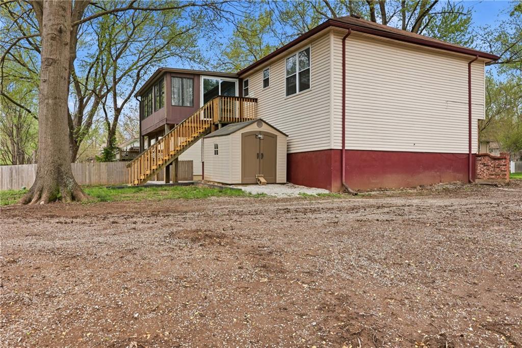 Welcome to Valley View Estates, where comfort, updates, and privacy come together in this move-in ready 4-bedroom, 2.5-bath home in Platte County. Situated on a quiet corner lot backing to peaceful greenspace, this property offers a rare blend of setting and functionality. Freshly updated with new carpet and paint throughout. The finished lower level provides flexible room for a second living area, recreation space, or home office. Enjoy the 3-season porch, perfect for relaxing while taking in views of the backyard and greenspace beyond. Step outside to a spacious deck overlooking the fenced yard, ideal for entertaining or unwinding. A storage shed adds extra convenience, and the 2-car garage offers plenty of space for parking and storage. Located on a quiet street in an established Northland neighborhood, this home is truly move-in ready and offers a fantastic opportunity in Kansas City.