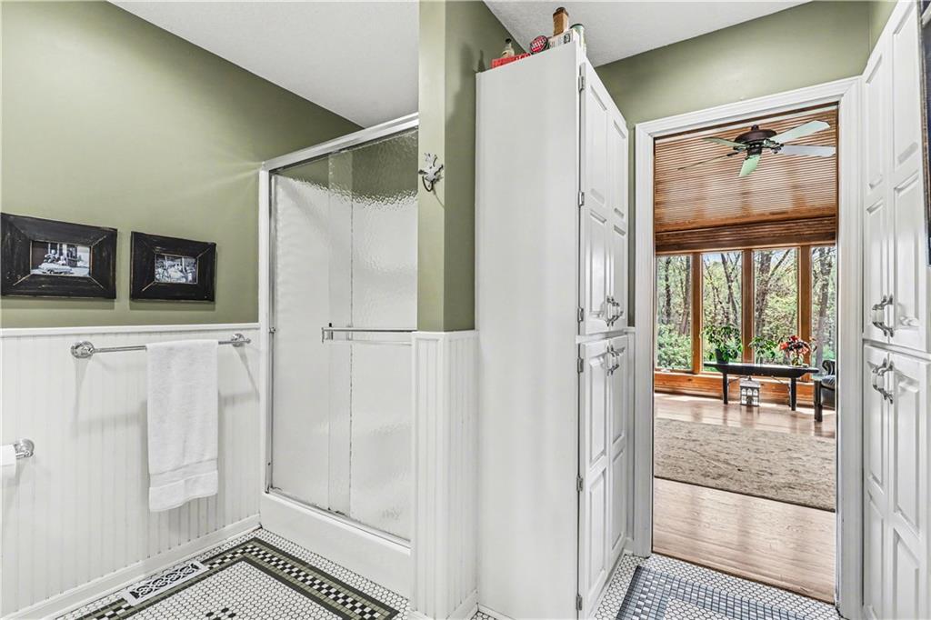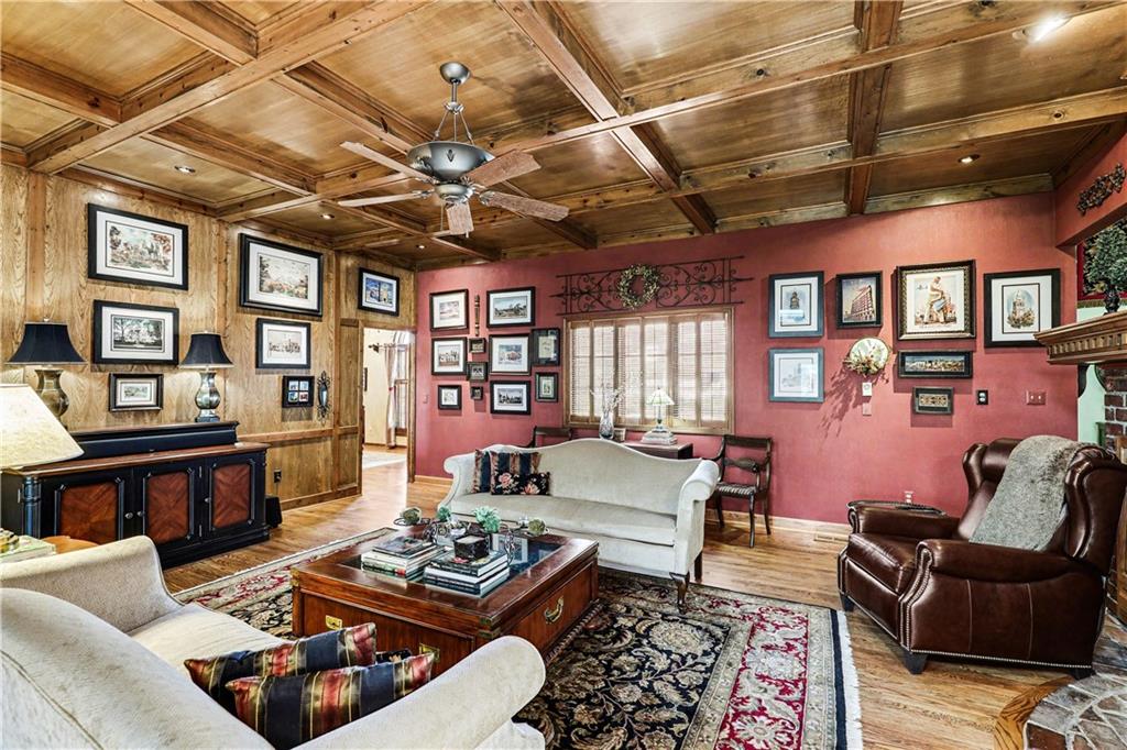 Welcome to this stunning 1.5-story home, perfectly positioned on a beautifully landscaped, tree-lined lot. Offering just over 3,000 square feet with an oversized two-car garage, this one-owner residence showcases thoughtful design, timeless character, and pride of ownership throughout. From the moment you step inside, you’re greeted by soaring ceilings and a sense of warmth and individuality. The expansive great room is truly the heart of the home, featuring striking beamed ceilings and a floor-to-ceiling brick wood-burning fireplace. Double doors lead to a sunroom that overlooks the private backyard—an ideal spot to relax and take in the peaceful surroundings. The open-concept kitchen is both functional and stylish, complete with an oversized island, double ovens, generous dining area, and sliding glass doors that open to a patio surrounded by mature trees and vibrant landscaping—perfect for entertaining or quiet evenings outdoors. Just off the kitchen, you’ll find a well-appointed mudroom, laundry room with sink, additional refrigerator, and a spacious walk-in pantry. The main-level primary suite offers comfort and convenience, featuring a walk-in closet, en-suite bath, and direct access to a versatile office or sitting room. Upstairs, a charming loft overlooks the living space below and leads to two spacious bedrooms, each with walk-in closets, and a full bath. The massive unfinished walk-out basement provides endless possibilities for future expansion, storage, or customization to fit your lifestyle. Lovingly maintained and thoughtfully designed, this exceptional home is truly one-of-a-kind. Don’t miss your opportunity to make it yours—homes like this rarely come along.