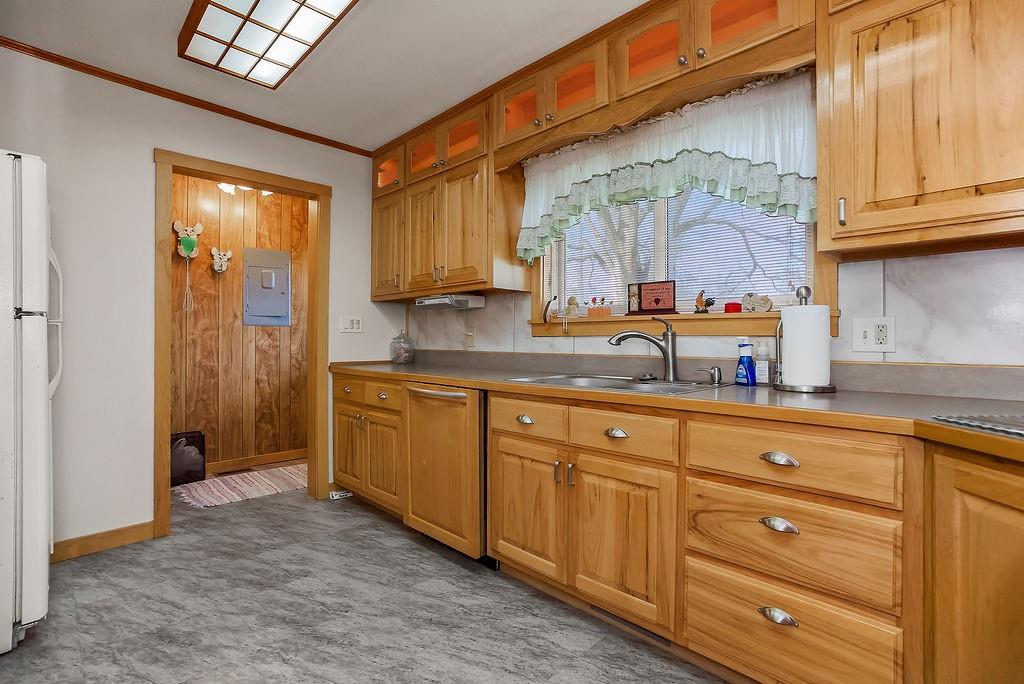 Situated on 1.6 acres, this beautifully maintained property is packed with upgrades and features an incredible shop loaded with all the bells and whistles. Pride of ownership shines throughout, with numerous updates including newer windows, roof, HVAC, furnace, water heater, and more. The 40x50 shop is a true standout—perfect for a business, hobby, or storage. Featuring three garage doors, full insulation, concrete floors, radiant floor heating, and a separate finished area, it offers endless possibilities. With excellent highway visibility, this space is ideal for anyone looking to run a business right from home. The home itself offers 3 bedrooms and 2 baths in excellent condition, highlighted by a fully remodeled kitchen that truly steals the show—stylish, functional, and ready to impress. Beautiful wood cabinetry, trim, and solid wood doors throughout add warmth, character, and a high-end feel. With expansive living space, exceptional updates, and a versatile shop with prime visibility, this property blends comfort, functionality, and opportunity in one must-see package.