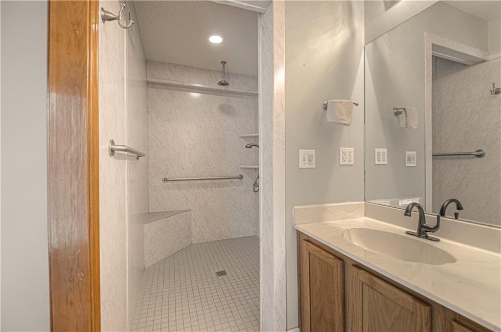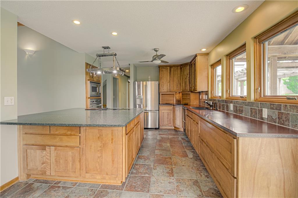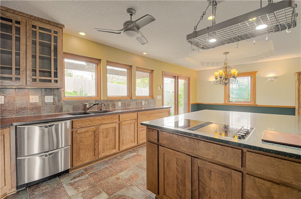 Rare opportunity in Pinecrest — and this one is truly one of a kind! Nestled in a quiet Parkville location just a short walk to shopping and dining (casual to fine) and a short drive to charming downtown Parkville and English Landing Park, this custom home has been thoughtfully transformed with an impressive list of updates and upgrades throughout (such as a Generac generator and quality Pella windows). The main level primary suite is a showstopper — two former bedrooms have been reimagined into a luxurious retreat featuring direct access to the deck and covered patio, a custom walk-in closet with a thoughtfully designed layout, a large double vanity, and plenty of additional surprises waiting to be discovered. The gourmet kitchen is a chef's dream, boasting top-of-the-line appliances, double dishwasher drawers, custom roll-outs, designer lighting, and a generous island with seating for eight or more — perfect for entertaining in style. The upper level offers a spacious bedroom, full bath, a loft with built-ins, and a flexible bonus space ideal for a home office or hobby room. The finished lower level is equally versatile, serving as a family room or non-conforming bedroom, complete with a full bath and abundant storage. Step outside to a beautifully landscaped backyard that is nothing short of a private oasis — featuring a stunning covered patio, established gardens, a hot tub connection, outdoor shower, oversized shed, and full privacy fence. Even the garage impresses with extensive built-ins and auxiliary heat. Extra touches everywhere. This one truly must be seen to be appreciated!