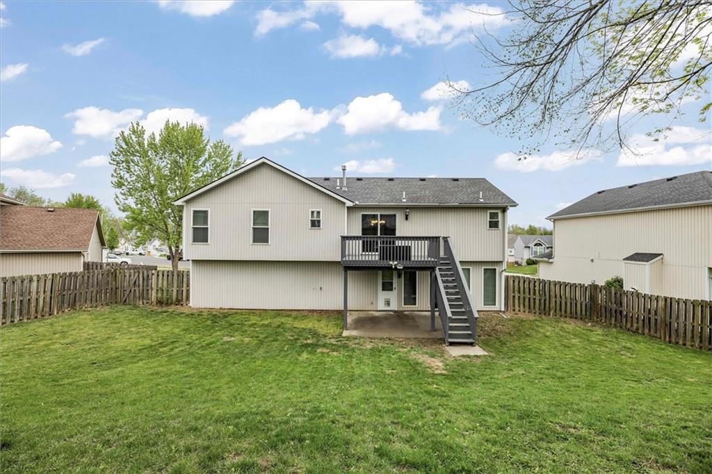 You’ll just love this SUPER CUTE front to back split with low maintenance exterior and fenced yard!! Entertaining and daily living are easy with this open floorplan that keeps you in the mix with family and friends while you’re preparing a meal. The island has bar seating for a quick meal, extra prep space or setting out food buffet style. The dining area has plenty of room for a large table and stylish storage to display your favorite serving pieces. The living room with vaulted ceiling can accommodate a lot of furniture and is the perfect spot to snuggle in for movie night in front of the fireplace. You’ll love the primary bedroom & ensuite bath with TWO closets AND a double vanity, BONUS!! The finished lower level has a half bath for convenience and walks out onto a concrete patio. There’s plenty of storage space in the sub-basement to keep clutter to a minimum. The location is GREAT with easy access to highways and a quick drive to KCI & Zona Rosa or head over to the Kansas side.