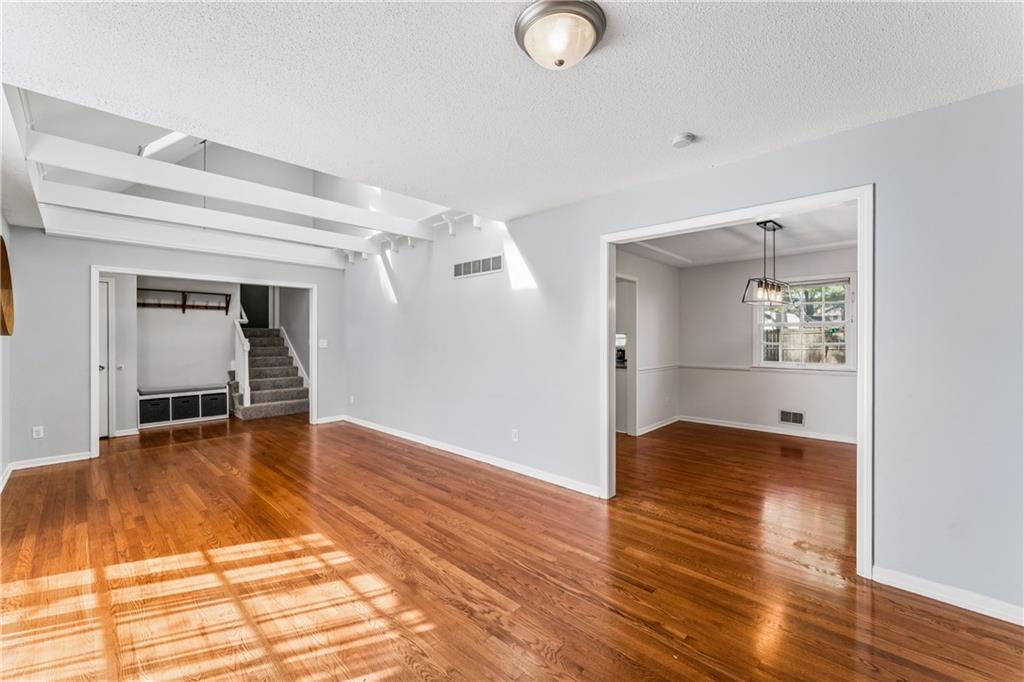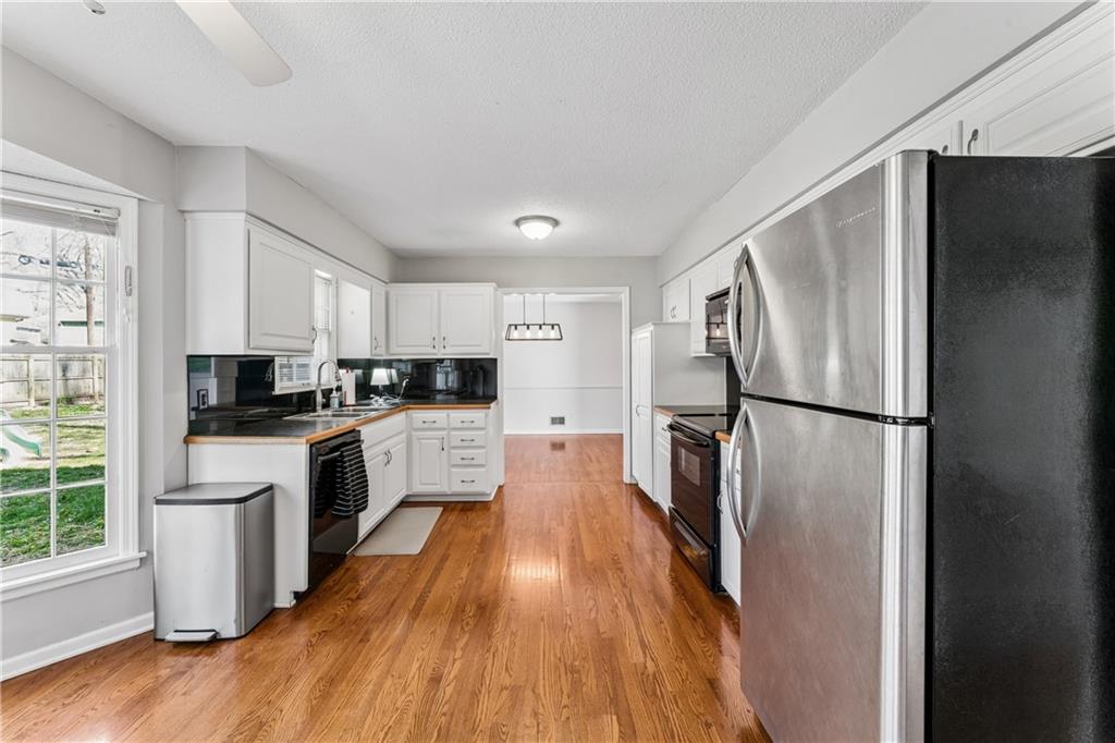 Welcome to this spacious 4-bedroom, 2.5-bath side-to-side split located in a quiet Kansas City neighborhood! This home offers an ideal blend of functionality and charm, featuring a large eat-in kitchen plus a formal dining room—perfect for both everyday living and entertaining. You’ll love the abundance of natural light throughout, highlighting the generous room sizes and multiple living spaces, including a unique loft overlooking the formal living room. Fresh interior paint and brand-new carpet make this home move-in ready, while hardwood floors run throughout (including under carpet), offering long-term value and flexibility. The exterior features a level lot with mature trees, a large driveway, and a 2-car garage. Enjoy outdoor living with a covered front porch, fully fenced backyard with 6-foot privacy fence, and a sunken patio area ideal for relaxing or entertaining. Playground equipment stays! Additional features include an 8-year-old HVAC system and a new this year water heater, plus a hidden hallway access to a massive attic storage space—perfect for organization or future potential. Located within Kansas City limits, making it an excellent option for buyers needing a Kansas City address.