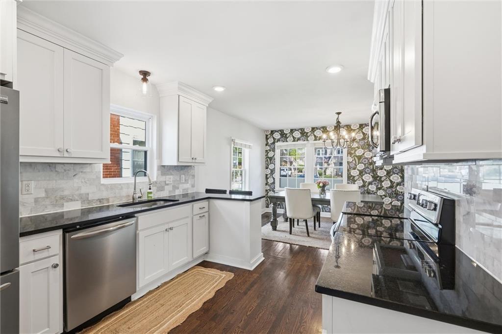 GREAT LOCATION FOR A GREAT PRICE! This Dible Tudor has Classic architectural details on the exterior combined with an ideal open floor plan inside. The interior boasts marble tile entryway, original hardwood floors, arched doorways & crown moldings. Don't forget the screened in side porch! The OPEN CONCEPT KITCHEN does not disappoint! Enjoy a large dining area, breakfast bar w/ seating, granite countertops, stainless steel appliances, marble tile backsplash & custom cabinetry. RARE butler's pantry has tons of additional storage and counter space. Bonus Room off the back of the house - perfect for TV room, sitting area, playroom, office, etc. 3 nice sized bedrooms upstairs. Primary bedroom has ensuite full bathroom with glass tile shower. Full bathroom in hallway includes shower over tub. Backyard is fully fenced with newer deck, plenty of grass plus additional firepit area. 2 CAR GARAGE WITH PRIVATE DRIVEWAY! This home is cute, cozy and full of character!