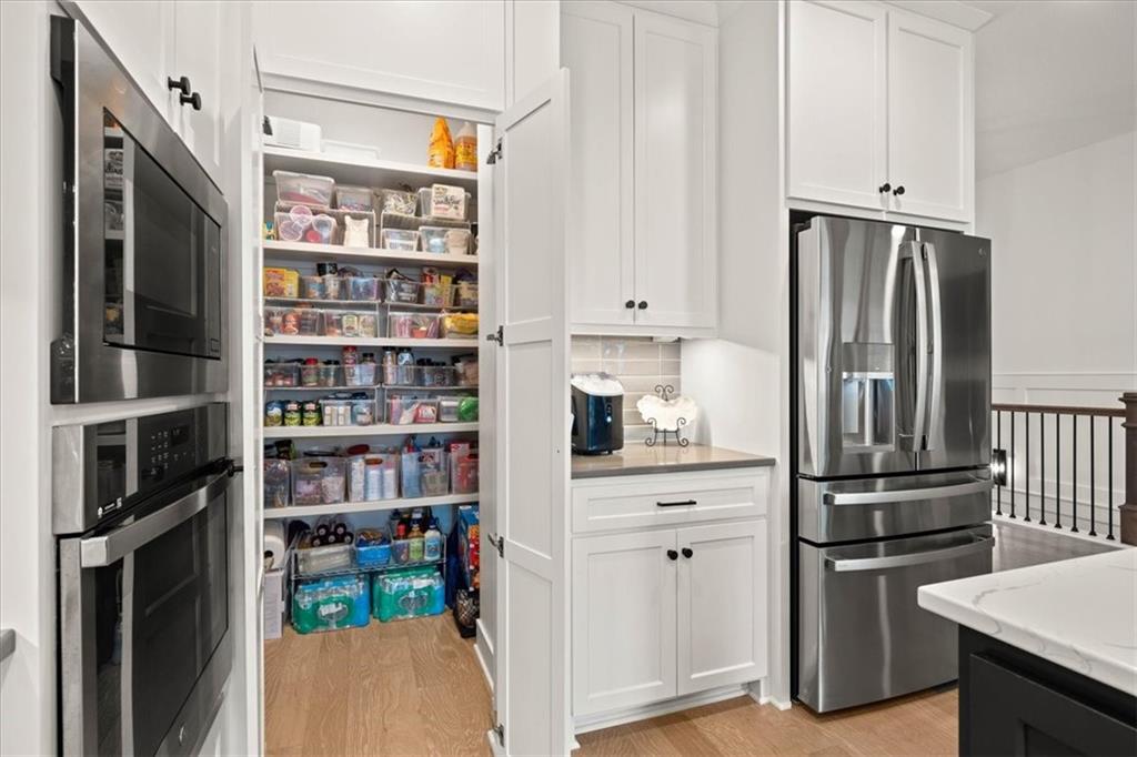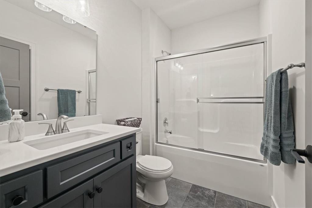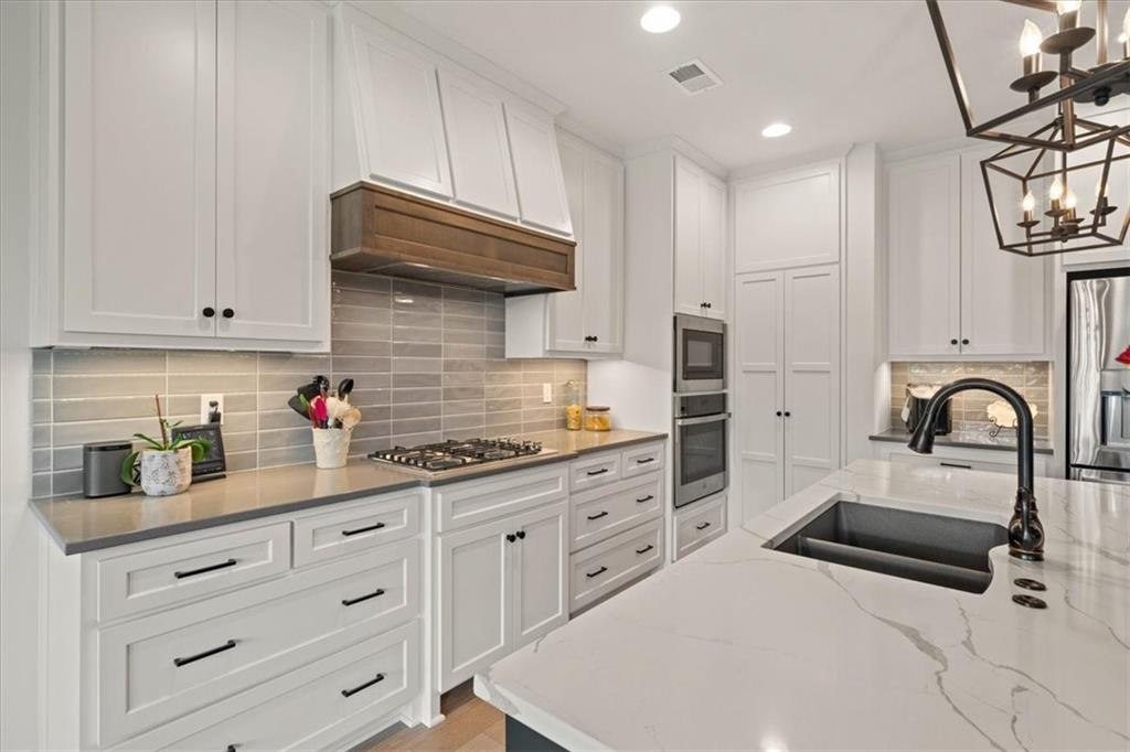 Welcome to this stunning JFE custom-built home loaded with high-end finishes, thoughtful upgrades, and exceptional detail throughout in an excellent location in the award winning Lee's Summit School District. A charming front porch and grand double-door entry welcome you into a light-filled, open main level designed for both everyday living and entertaining. The spectacular kitchen is a true showpiece featuring abundant custom cabinetry, built-in trash storage, a massive quartz island, gas cooktop, and an oversized walk-in pantry. The kitchen flows seamlessly into the dining area and spacious living room highlighted by a dramatic floor-to-ceiling stone fireplace, flanked by built-in cabinetry and floating shelves. The luxurious primary suite is a true retreat with a spa-like ensuite bath offering a walk-in shower with dual shower heads, including a rain shower, and an incredible walk-in closet that connects directly to the laundry room. Every bedroom includes its own private bath, offering comfort and privacy for family and guests alike. The finished walkout lower level provides outstanding additional living space with a large rec room, stylish wet bar, two spacious bedrooms, two full baths, and still plenty of unfinished storage. Some of the many exceptional details include beautiful wood beams, inset tray ceilings with shiplap accents, Graber window treatments, extensive landscaping upgrades, an epoxy-coated garage floor and basement storage area, a 24-foot deep garage, an extended patio, and a covered composite deck perfect for relaxing or entertaining. Located in a vibrant amenity-rich community with miles of walking trails, a neighborhood pool, sand volleyball, a park and play area, several ponds (including one with a fishing dock), and easy access to James A. Reed Wildlife Area. This amazing home offers an exceptional lifestyle in one of the area’s most convenient and sought-after settings.
