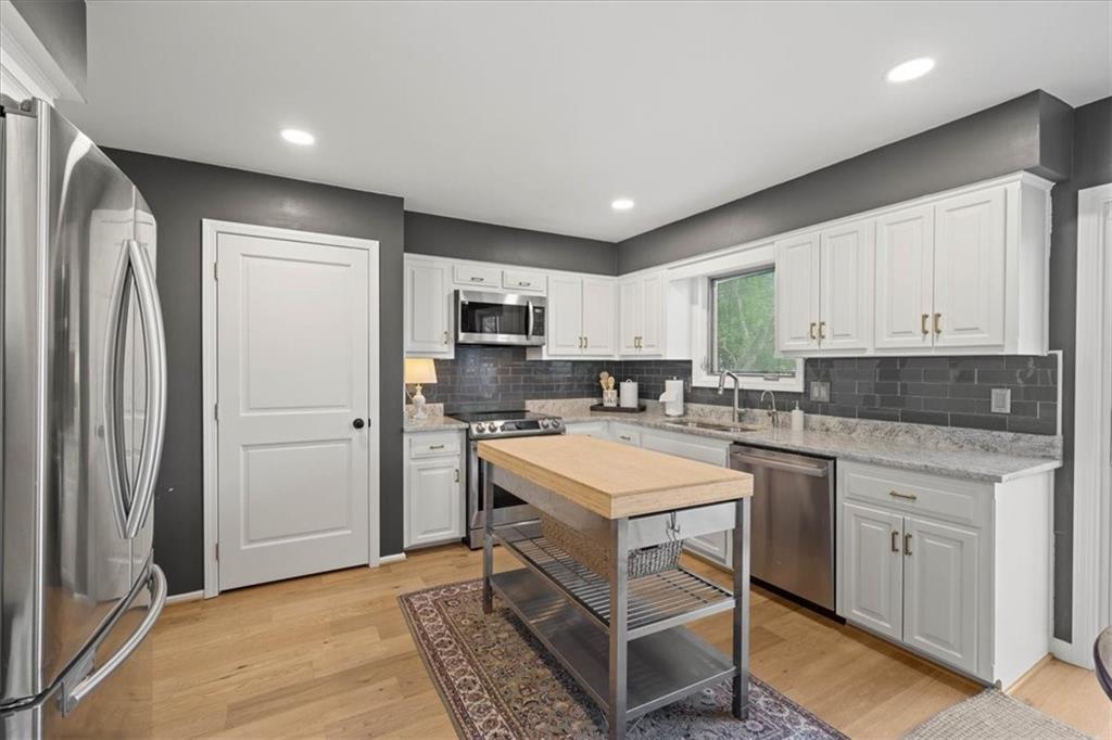 Completely renovated with a fresh, sophisticated aesthetic, this home offers beautiful natural light and wood floors throughout the main level. The kitchen reflects today’s design preferences with white cabinetry, stone countertops, and classic subway tile, creating a crisp and timeless feel. Upstairs, four bedrooms are paired with updated bathrooms and a cohesive, chic design throughout. Recent updates to the heating system and water heater add to the home’s overall appeal and peace of mind. Ideally located near Blue Valley North High School and Valley Park Elementary School, with convenient access to nearby trails, parks, shopping, and everyday amenities.