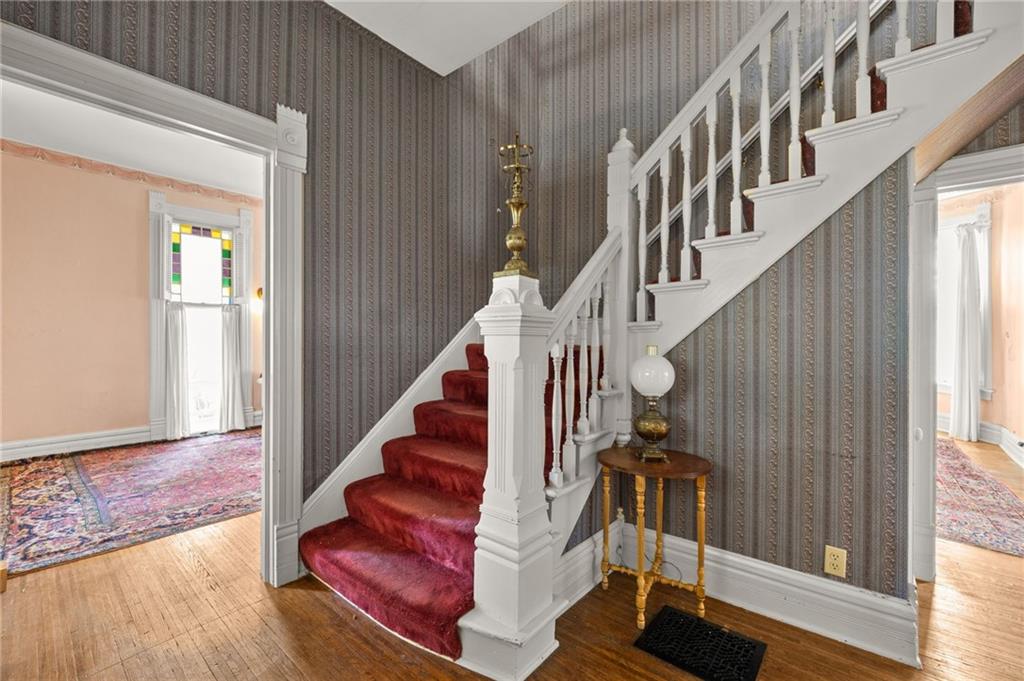 Step into timeless elegance with this beautifully preserved historic home, where character and craftsmanship shine at every turn. From the moment you arrive, the inviting large front porch welcomes you—perfect for relaxing mornings or evening gatherings. Inside, you’ll find soaring tall ceilings, expansive windows that flood the home with natural light, and stunning original woodworking throughout. Rich details like stained glass windows, transom windows, and original built-ins highlight the home’s authentic charm, while classic fixtures add to its warm, nostalgic feel. This spacious home features four bedrooms and one and a half baths, including a charming clawfoot tub that adds a touch of vintage luxury. A large sunroom at the back of the home offers the perfect space to unwind year-round. Situated on a desirable corner lot, the property boasts a generous backyard filled with character—featuring original brick from Pine Street, five varieties of rose bushes, beautiful hydrangeas, mature fruit trees, and stately pine trees. A detached rear garage provides additional convenience and storage. Ideally located near the University of Central Missouri and Whiteman Air Force Base, this home offers both historic charm and modern-day accessibility. With its abundance of original features and unique details, this one-of-a-kind property is truly a rare find.