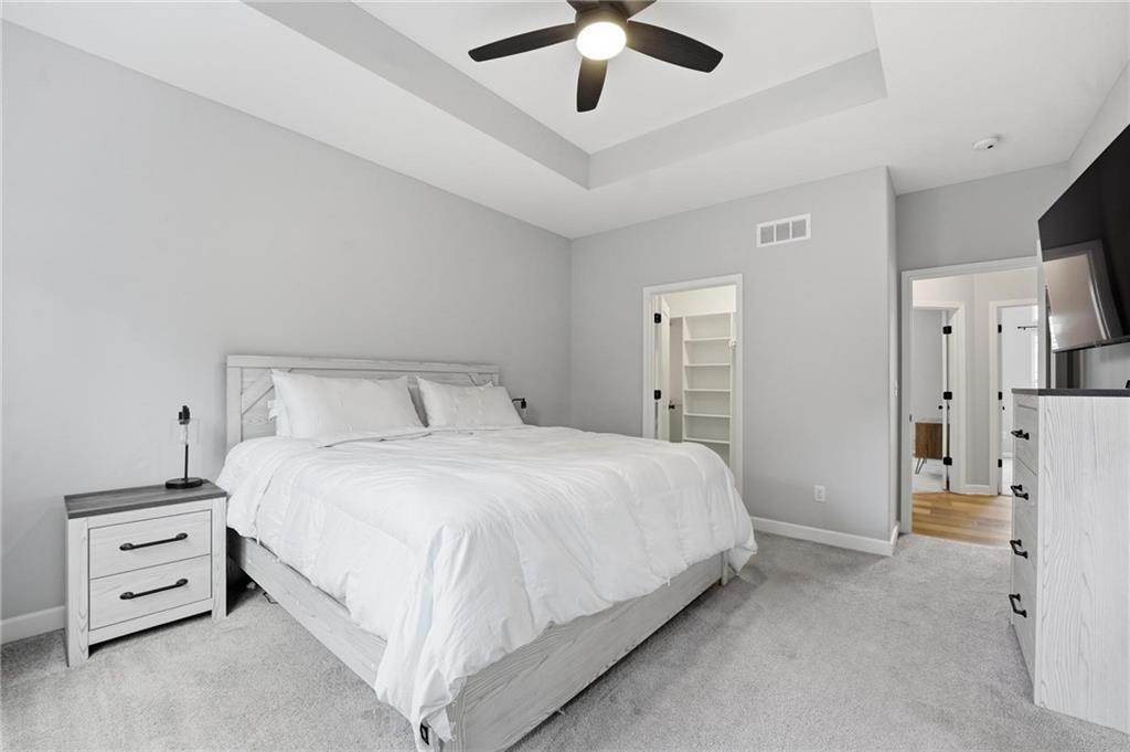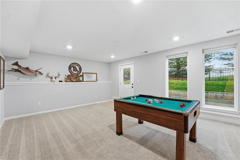 Welcome to 2209 Greenfield Court, a move-in-ready 5-bedroom home in The Meadows at Greenfield that allows you to skip the typical new construction to-do list and start enjoying your home from day one. As you walk in, you are greeted by an open layout filled with natural light and clean, modern finishes. The living room centers around a stone fireplace and flows seamlessly into the kitchen with granite counters, an island, and pantry, giving you a space that works just as well for everyday living as it does for hosting. Your main level primary suite provides a private retreat with a walk-in closet and a fully tiled walk-in shower. Two additional bedrooms and laundry on the main level give you the convenience of single-level living. The finished walk-out basement gives you flexibility with a large entertainment space, wet bar, projector setup, two additional bedrooms, a full bath, plus storage and a workshop area. Whether you need space for guests, hobbies, or everyday living, you have it here. Outside, you get more than just a backyard. You have a newly installed wrought iron fence that keeps the space open while adding security. You can enjoy evenings on the patio and fire pit area, and the added concrete pad gives you flexibility for a shed or additional use. The professionally landscaped flower beds with stone borders, decorative white and blue rock, and landscape lighting create a clean, finished look, while the color programmable permanent soffit lighting allows you to customize the exterior year-round. Inside and out, the details have already been handled for you, including blinds, a new fence and garage door openers saving you time and additional expense after closing. Located on a quiet cul-de-sac in a neighborhood with a community pool, walking trails, and fishing ponds, you also have convenient access to schools, parks, and highways.