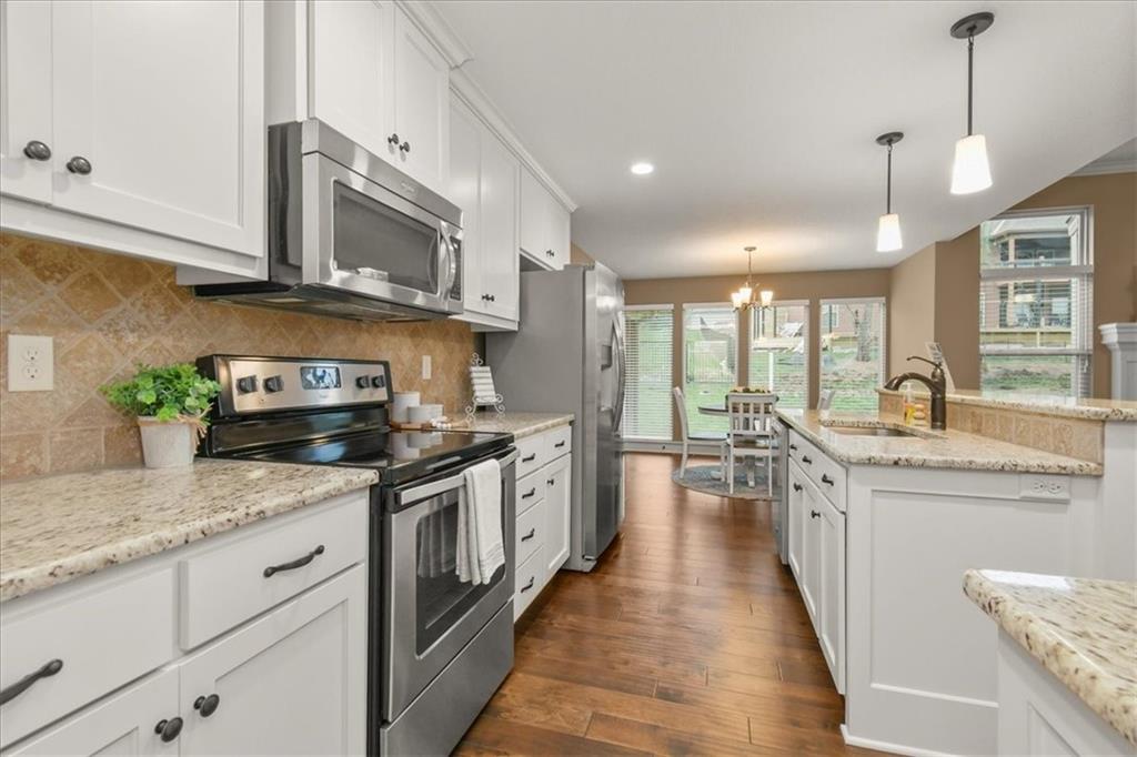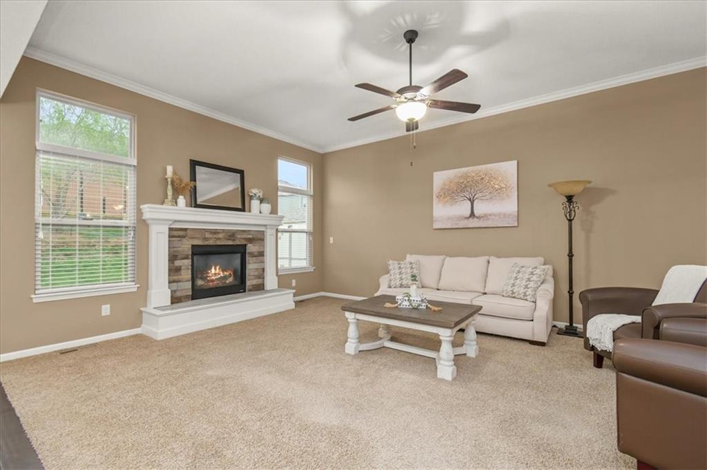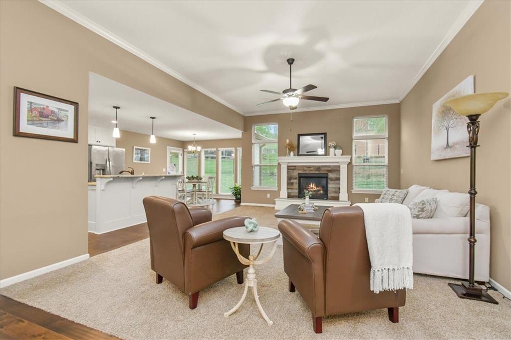 Experience the perfect blend of modern sophistication and suburban comfort in this stunning ranch-style residence. The inviting exterior, featuring a three-car garage and stone accents, opens into a light-filled interior defined by high ceilings and an expansive open-concept layout. The home's centerpiece features a gourmet kitchen that shines with crisp white cabinetry, premium granite countertops, and a sleek stainless steel appliance package, seamlessly transitioning into a cozy dining area and a spacious great room anchored by a contemporary stone gas fireplace. Retreat to the luxurious primary suite, where a tray ceiling adds architectural interest and the ensuite bathroom offers a dual-sink vanity alongside a deep soaking tub for ultimate relaxation. Designed for practical living, the main level includes a dedicated laundry room, featuring a sink & cabinets, and a highly functional mudroom with built-in cubbies and bench seating. The finished basement provides a massive flexible space, ideal for a home theater, gym, or recreation room, as well as an oversized 4th bedroom with walk-in closet. Outdoor enthusiasts will appreciate the large, lush yard and the covered rear patio, perfect for hosting evening gatherings or enjoying a quiet sunset and beautiful south valley views. Situated in a peaceful cul-de-sac, this energy-efficient home combines high-end finishes with everyday convenience, offering a rare opportunity for turnkey living in a prime location.