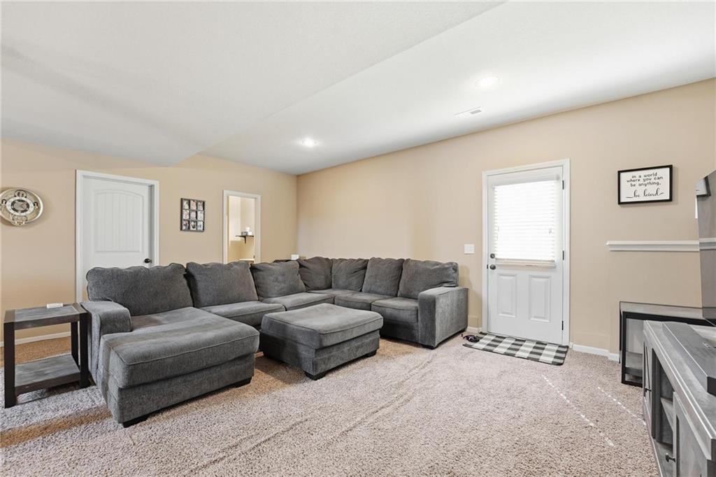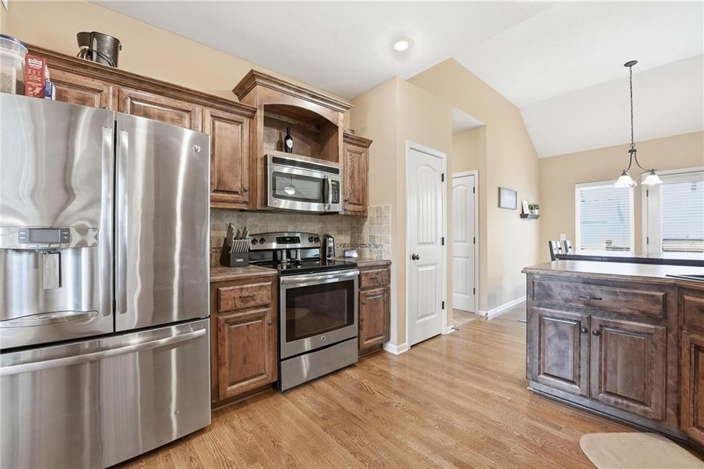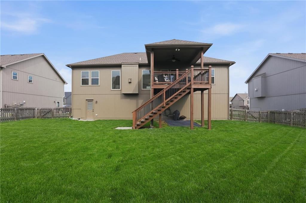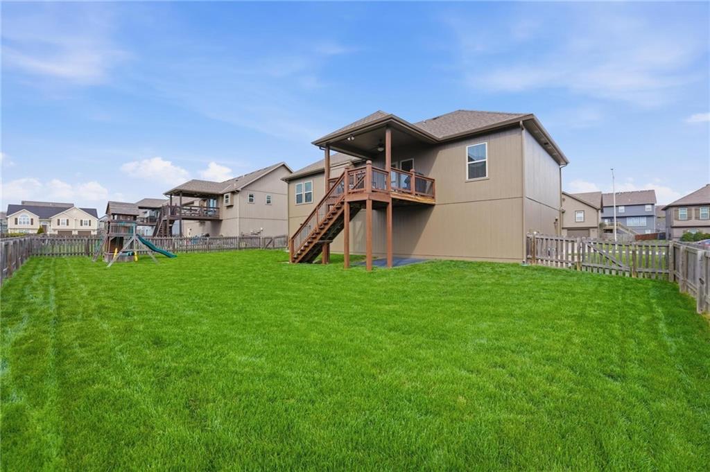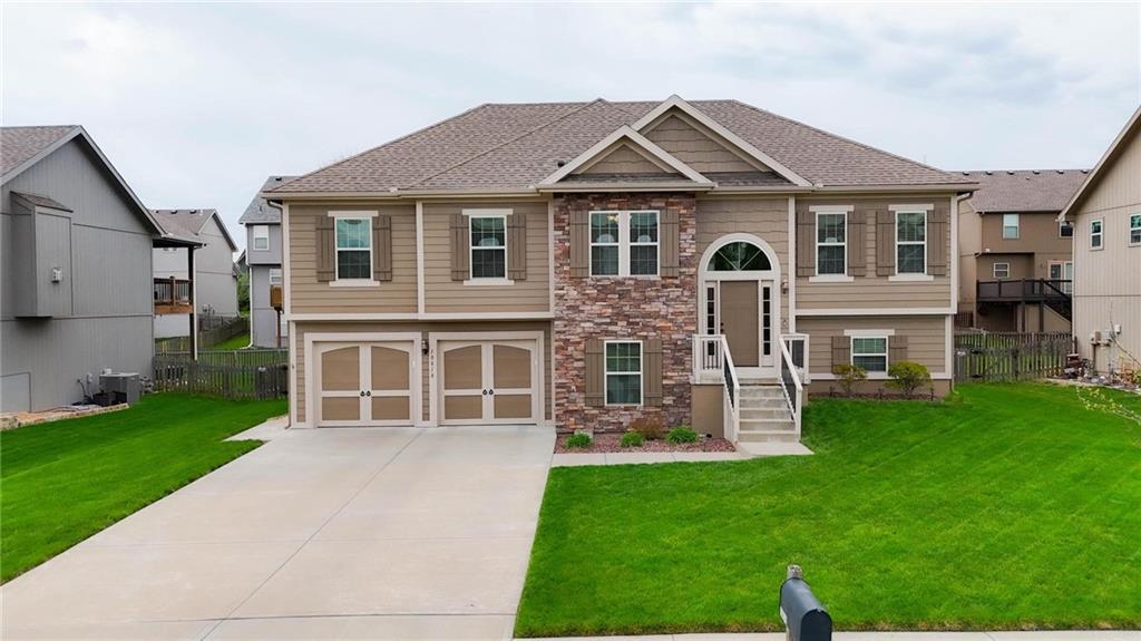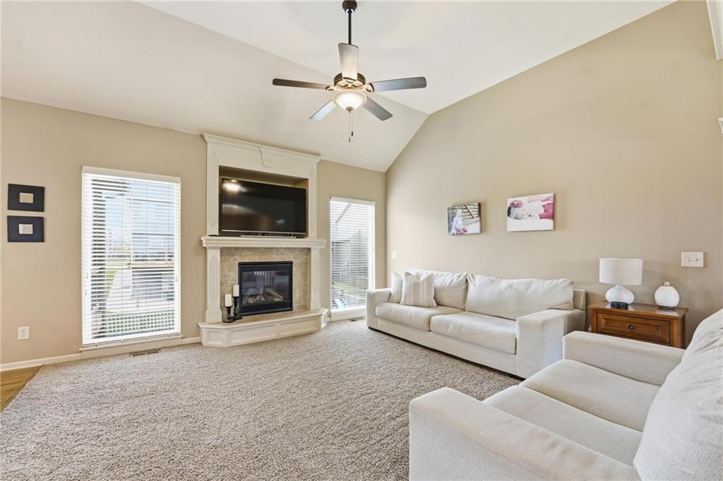 Fresh interior & exterior paint April 2026! Exceptional home on a great lot with lush, green lawn. Level drive leads to oversized 2 car garage. Home is bright & open with welcoming entry, vaulted ceilings & open plan. This home offers a great flex space that is perfect for home office or formal dining room. Great Room has fireplace, extensive trim and is open to dining area with hardwood floor, that is open to the large kitchen! Primary suite is on one side of the home with large bedroom, walkin closet & private bath with tile floor, jetted tub, separate shower, double vanity! 2 additional bedrooms are on the opposite side of the home with great closet space & a hall bath with tub/shower. Lower level family room walks out to the fantastic backyard. 3rd FULL bathroom in lower level along with a 4th bedroom. Off main level is a fantastic covered deck with ceiling fan, steps down to the backyard.