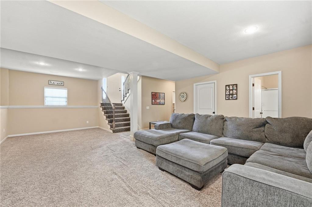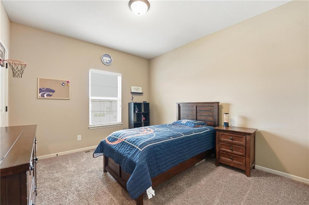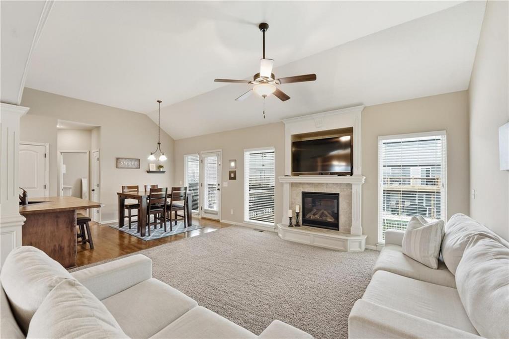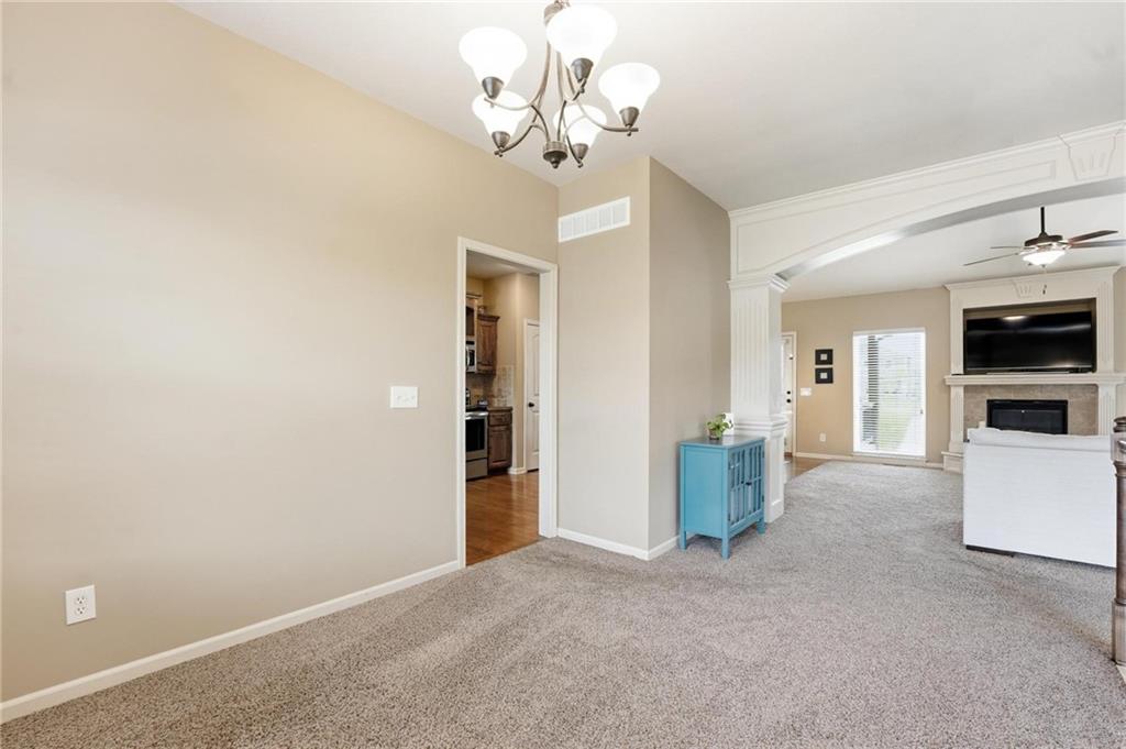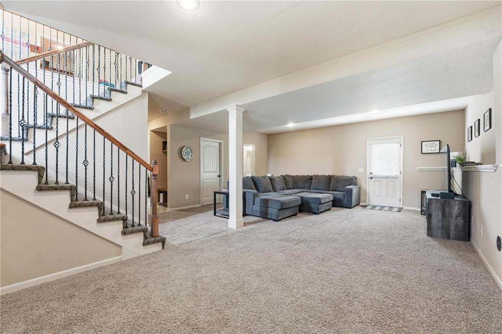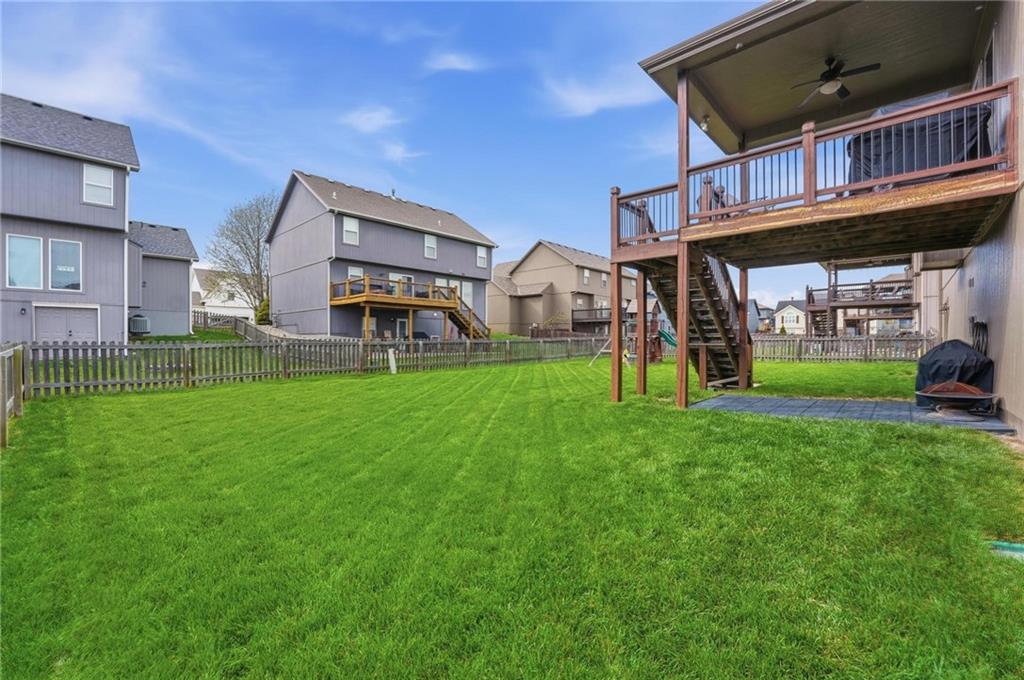 Fresh interior & exterior paint April 2026! Exceptional home on a great lot with lush, green lawn. Level drive leads to oversized 2 car garage. Home is bright & open with welcoming entry, vaulted ceilings & open plan. This home offers a great flex space that is perfect for home office or formal dining room. Great Room has fireplace, extensive trim and is open to dining area with hardwood floor, that is open to the large kitchen! Primary suite is on one side of the home with large bedroom, walkin closet & private bath with tile floor, jetted tub, separate shower, double vanity! 2 additional bedrooms are on the opposite side of the home with great closet space & a hall bath with tub/shower. Lower level family room walks out to the fantastic backyard. 3rd FULL bathroom in lower level along with a 4th bedroom. Off main level is a fantastic covered deck with ceiling fan, steps down to the backyard.