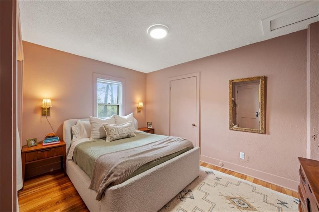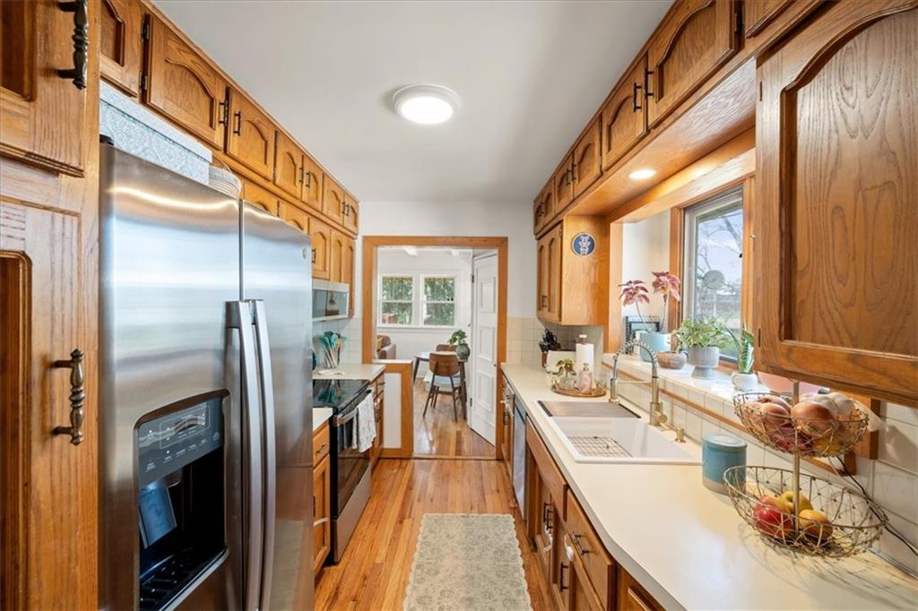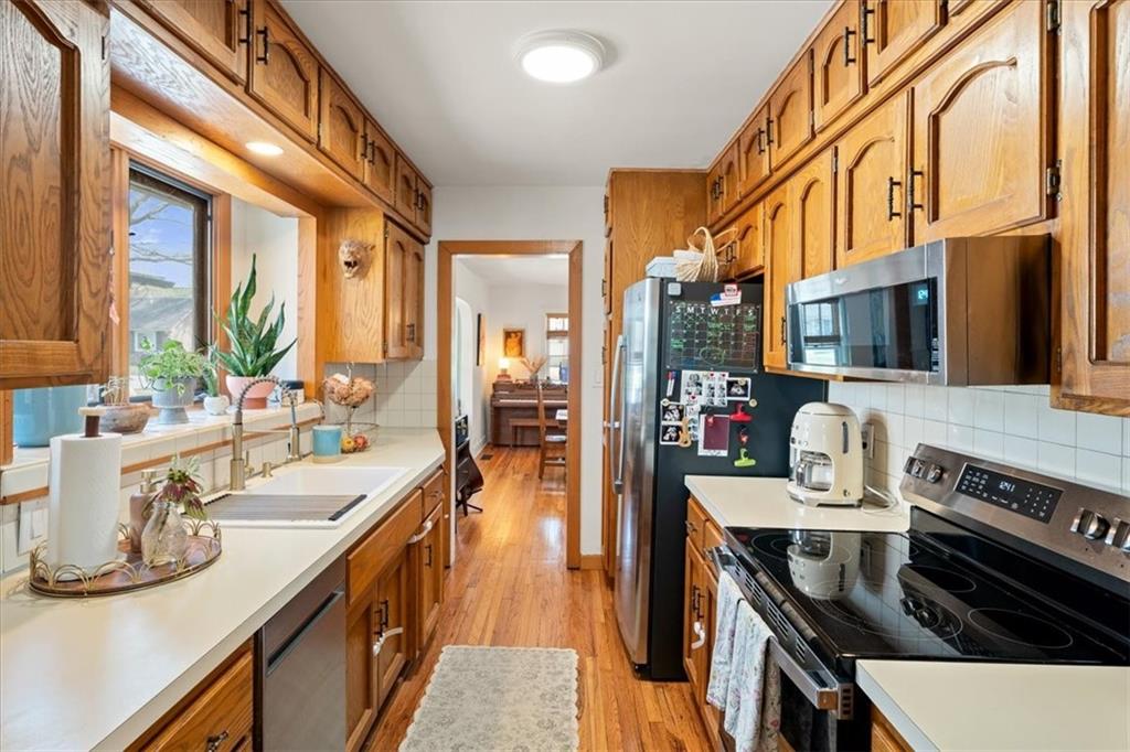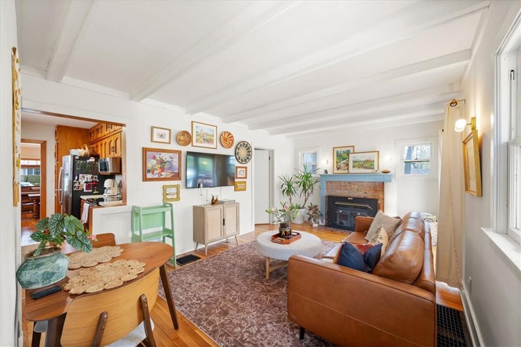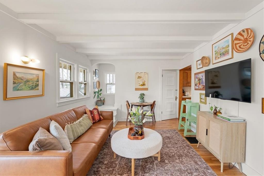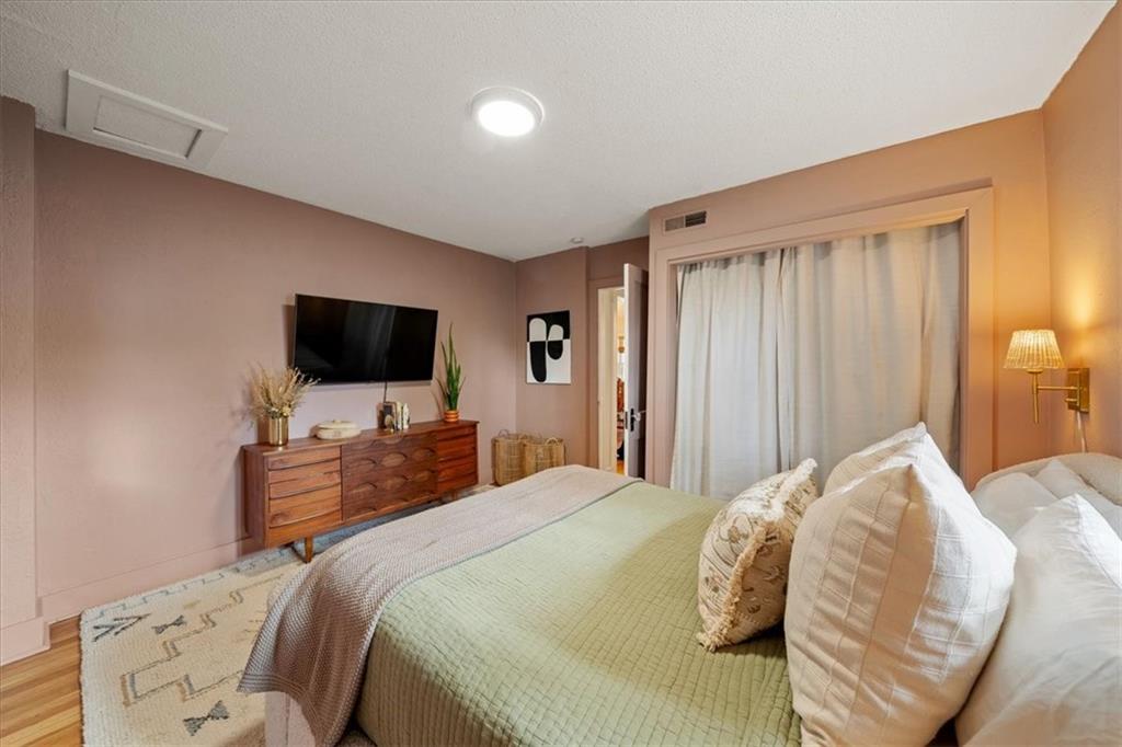 Tucked into a quiet Overland Park street, this beautifully styled bungalow blends original character with thoughtful updates and everyday livability, all just minutes from downtown Overland Park’s shops, restaurants, and the brand-new farmers market opening this summer. The inviting front porch sets the tone, while inside hardwood floors and natural light carry throughout the main living areas. The dining room flows into a comfortable living space with exposed beams, fireplace, and a built-in window seat that adds both charm and function. The kitchen offers solid wood cabinetry, updated appliances, and a practical layout with room to personalize over time. The home features three bedrooms, including two on the main level and a spacious upper-level retreat. One main-level bedroom sits behind glass French doors, offering flexibility to use as a bedroom, office, or additional living space. Major mechanical updates include a newer furnace and water heater. Out back is where this property truly stands out. A large elevated deck overlooks a deep, tree-lined yard with multiple areas for entertaining, relaxing, and enjoying the peaceful setting. A finished and insulated studio just off the garage creates an ideal space for a home office or creative workspace. Full unfinished basement provides excellent storage and hobbies space. Located in the highly regarded Shawnee Mission school district with quick access to parks, shopping, dining, and major highways, this home offers a rare combination of character, flexibility, and location. Homes with this level of outdoor space and functional flexibility rarely come available at this price point. You'll have to act fast!