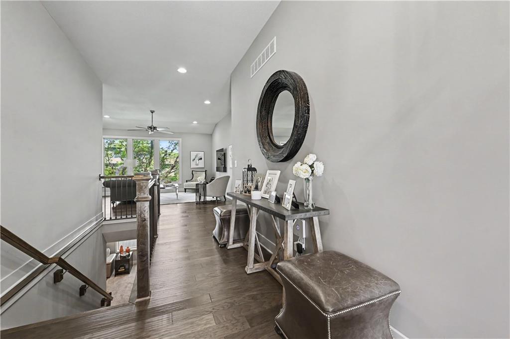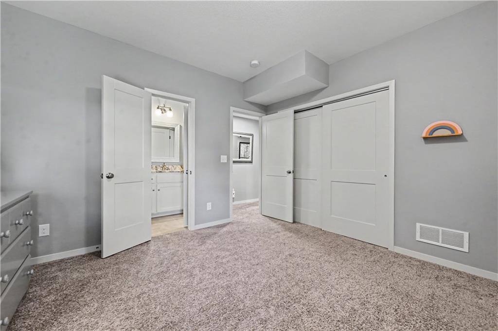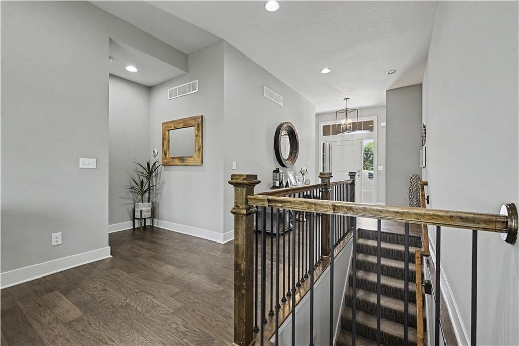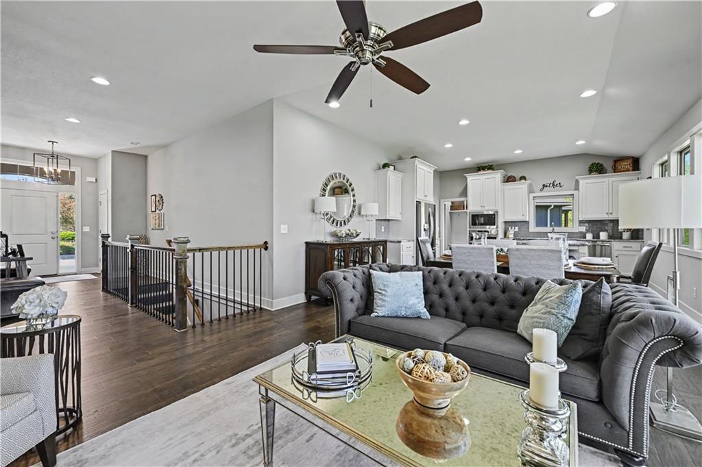 GORGEOUS reverse 1.5 story home on an amazing Cul De Sac in the heavily sought after Arbor Woods in Olathe with wonderful curb appeal! Beautiful gourmet kitchen with huge eat in granite island, with walk in pantry, hardwood floors, and stainless steel appliances. Lovely deck off conveniently located off kitchen - overlooking the beautiful treed view- great for grilling and entertaining! Spacious Master BR with ensuite with vaulted ceiling, carpet, shower, double vanities with granite tops, walk through closet, laundry and another bedroom/office all on main floor. Lower level has HUGE family room with wet bar, with third large bedroom with full bath, and large storage.