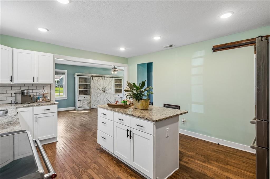 Enjoy the best of country living with city convenience in this 3-bedroom, 2-bath ranch on a full acre in Kansas City, Kansas! An enclosed entry welcomes you into an oversized living room, with French doors leading to a dedicated dining space. The beautifully updated kitchen features a center island with bar seating—perfect for gathering and everyday living. Just beyond the kitchen are two spacious bedrooms and a full bath, while the private primary suite is tucked down the hall for added comfort. The lower level offers abundant storage space to meet your needs. Step outside to relax on the back deck, cool off in the above-ground pool, or take in the peaceful views of the expansive backyard and open fields beyond. A rare opportunity to enjoy space, privacy, and convenience all in one!