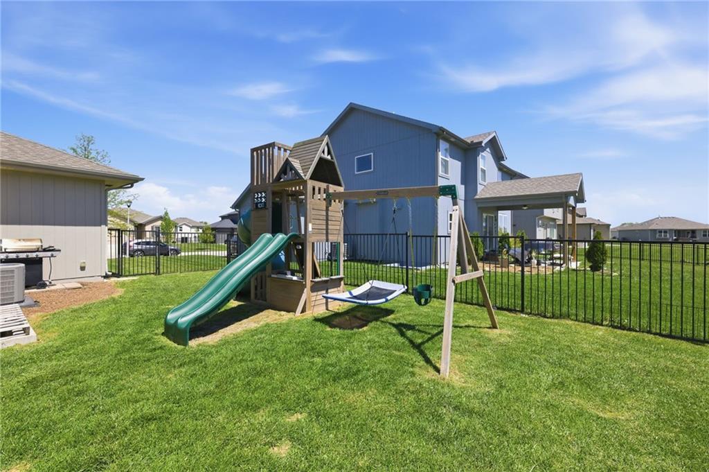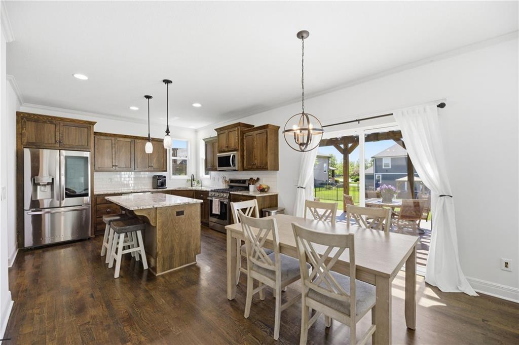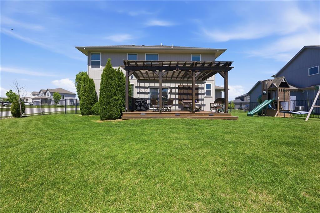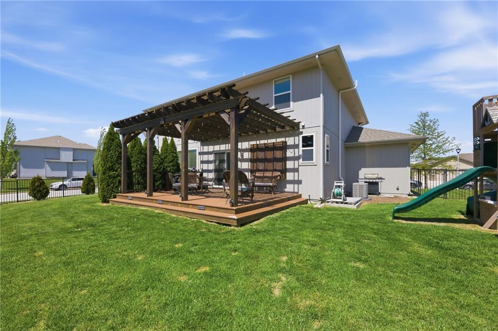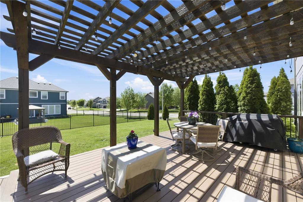 Welcome home to this beautifully refreshed 2-story in Oak Run in Olathe! Situated on a desirable corner lot, this home offers great curb appeal with a fully fenced backyard featuring a 5-ft steel fence. Step outside to an entertainer’s dream with an expansive composite deck, freshly stained cedar pergola, and a custom cedar TV box with connections, creating the perfect space for relaxing evenings or hosting friends and family. Inside, you’ll appreciate the fresh interior paint and thoughtfully updated lighting throughout, including Lutron lighting on the main level. The kitchen is both functional and stylish with hardwood floors, granite countertops, stainless steel appliances, a gas stove, and beautifully stained cabinetry. The unfinished basement provides an excellent opportunity to build instant equity with space to add an additional bedroom and bathroom tailored to your needs. Enjoy all that Oak Run Estates has to offer, from peaceful neighborhood walks to sunny afternoons at the community pool and is just 1 mile from Lake Olathe that includes a beach, spray ground, fishing, kayaks, amphitheater, Disc Golf and so much more outdoor fun!