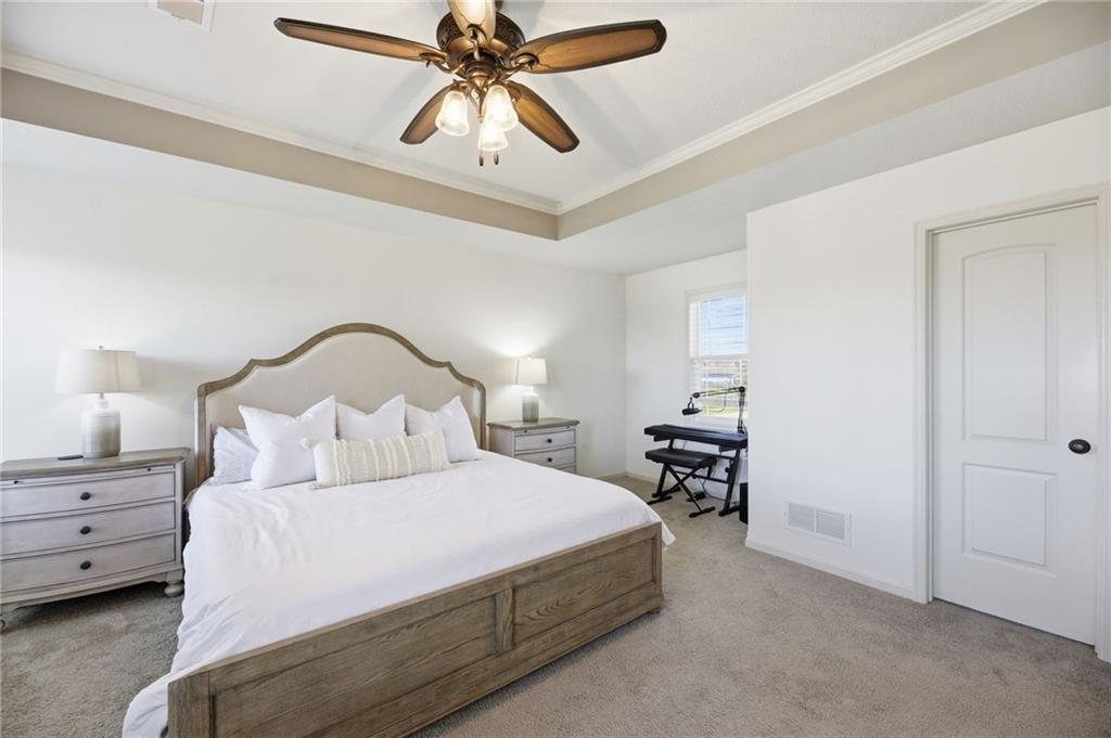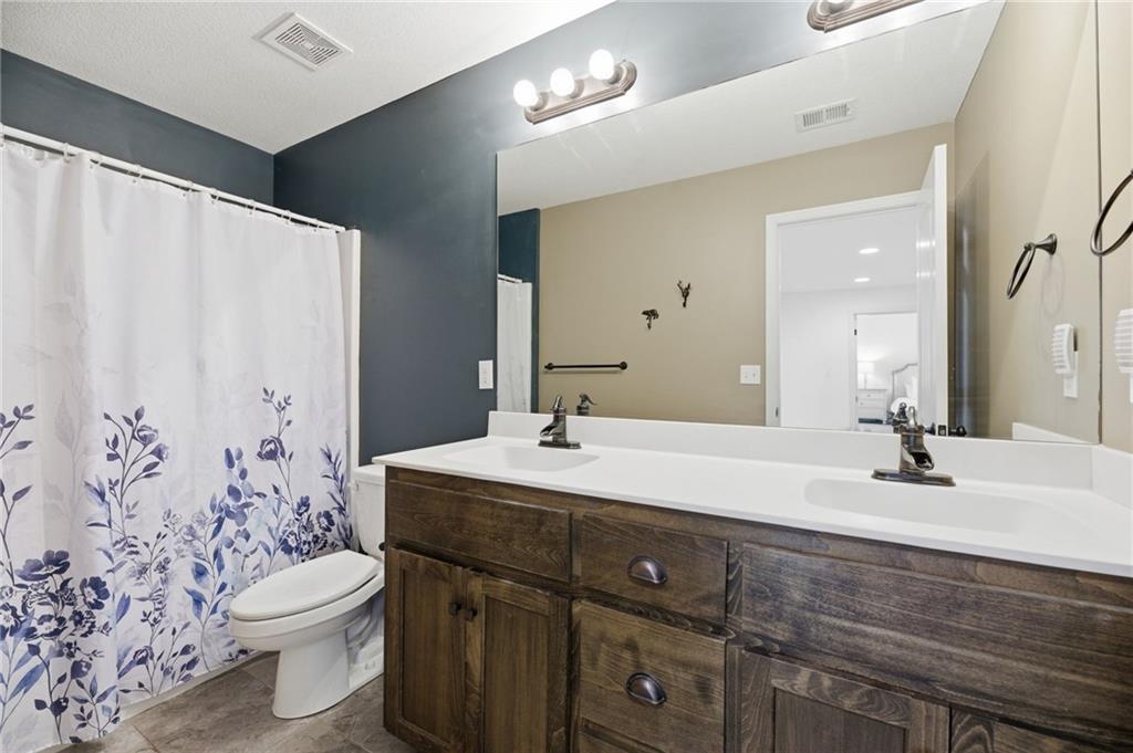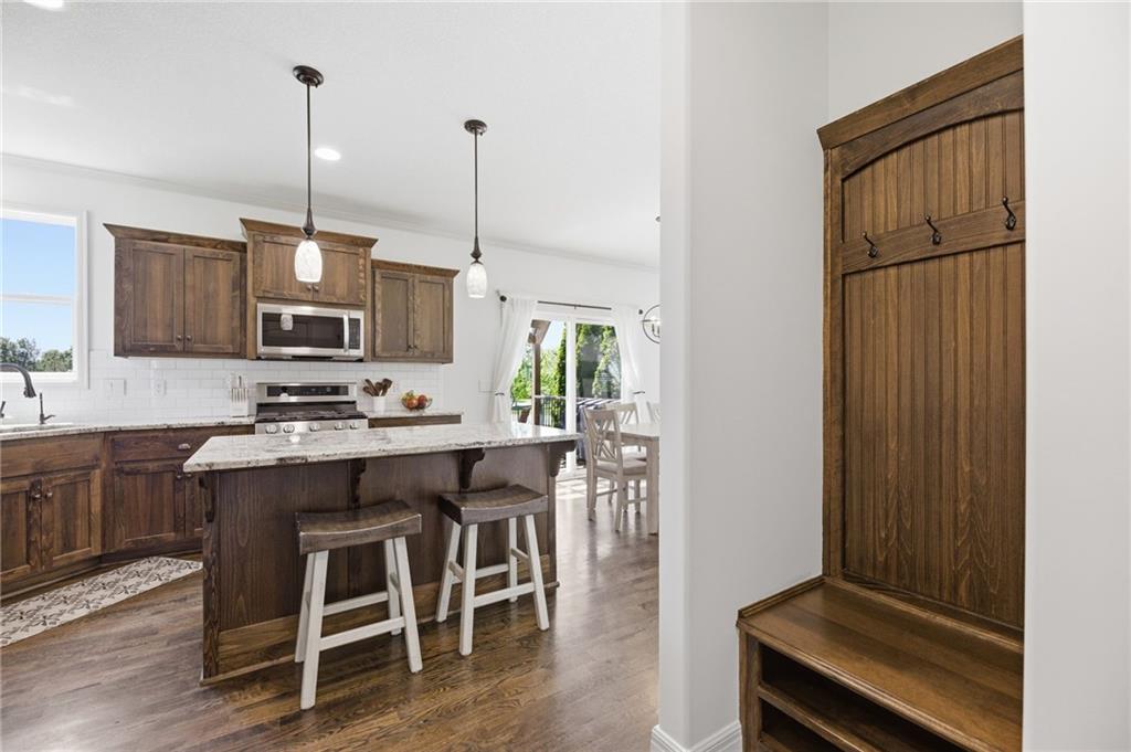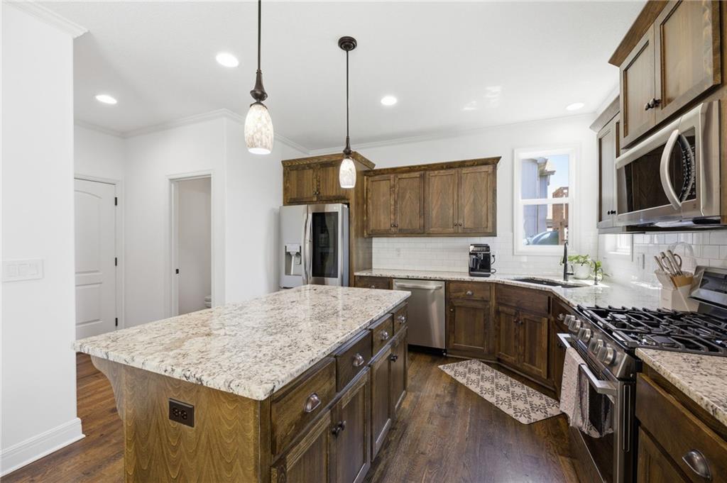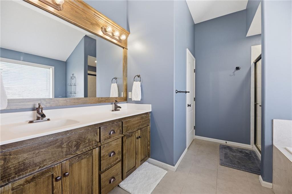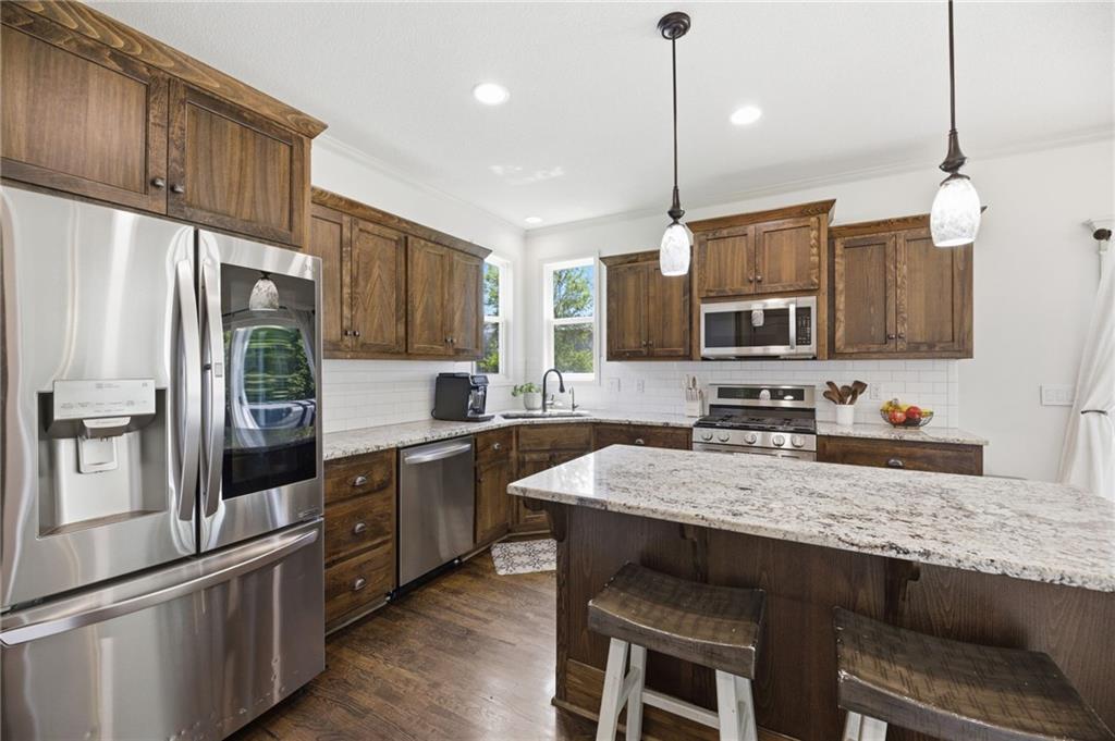 Welcome home to this beautifully refreshed 2-story in Oak Run in Olathe! Situated on a desirable corner lot, this home offers great curb appeal with a fully fenced backyard featuring a 5-ft steel fence. Step outside to an entertainer’s dream with an expansive composite deck, freshly stained cedar pergola, and a custom cedar TV box with connections, creating the perfect space for relaxing evenings or hosting friends and family. Inside, you’ll appreciate the fresh interior paint and thoughtfully updated lighting throughout, including Lutron lighting on the main level. The kitchen is both functional and stylish with hardwood floors, granite countertops, stainless steel appliances, a gas stove, and beautifully stained cabinetry. The unfinished basement provides an excellent opportunity to build instant equity with space to add an additional bedroom and bathroom tailored to your needs. Enjoy all that Oak Run Estates has to offer, from peaceful neighborhood walks to sunny afternoons at the community pool and is just 1 mile from Lake Olathe that includes a beach, spray ground, fishing, kayaks, amphitheater, Disc Golf and so much more outdoor fun!
