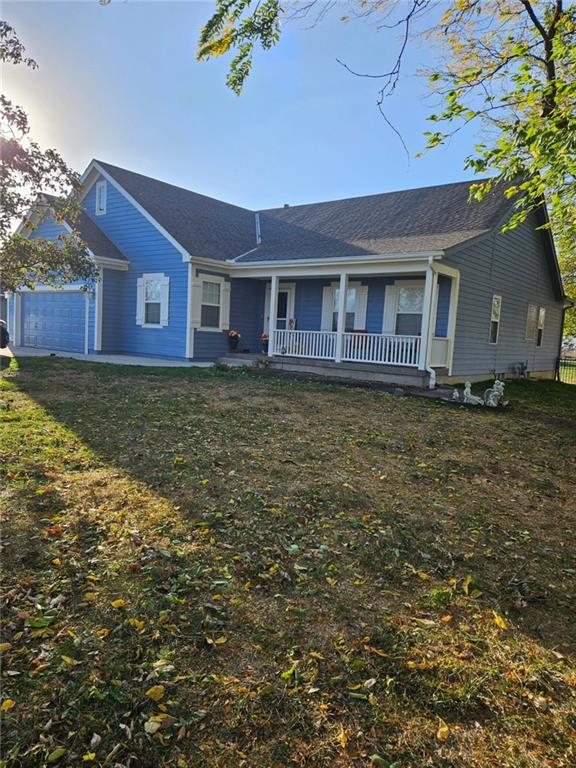 Come check out this beautiful maintained True Ranch that sits on the 1st corner lot in the Subdivision offering an open and inviting floor plan perfect for everyday living and entertaining. It has 3 bedrooms and 3 FULL bathrooms w/ a LARGE unfinished basement. All 3 bedrooms on main level, including a secondary ensuite. The primary suit has a closet the length of the room with built in shelves. Laundry room is right outside primary bedroom making this home, main level living! The open-concept kitchen features abundant counter space, appliances tht stay, and a seamless flow into the dining area—perfect for cooking, entertaining, or simply enjoying everyday life. Step out to your oversized sunroom—perfect for grilling, relaxing, or soaking in a quiet evening view. The large unfinished basement is ideal for creating your perfect space or just for storage. Thoughtful updates throughout the home include the new Sunroom, Fence, Roof, Carpet and hot water heater, Fresh paint inside and outside. Lots of space to enjoy, come check it out. This home is move-in ready and waiting for you! Located in a desirable Raymore neighborhood, Enjoy easy access to walking trails, highway access, shopping and Restaurants. Open houses will be available.