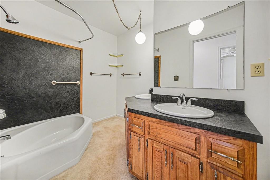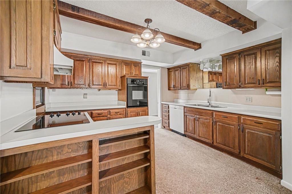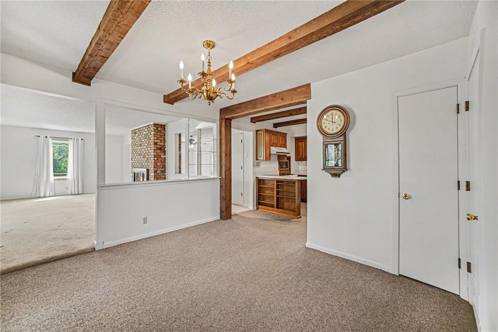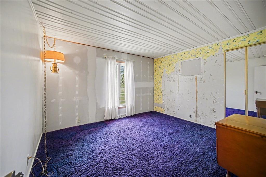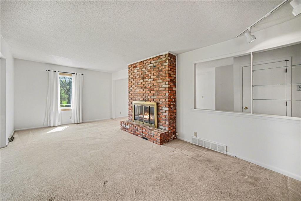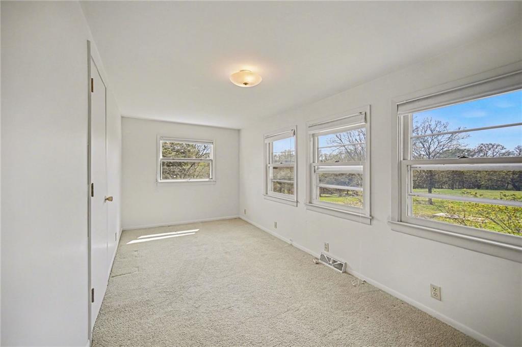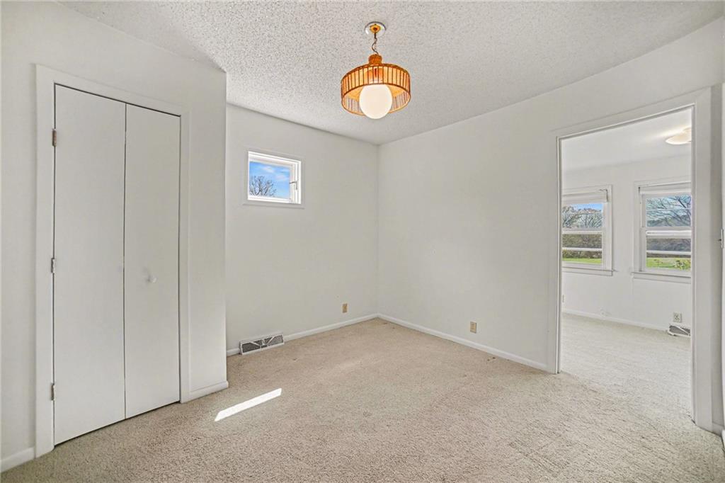 Spacious 2 Story home set on nearly 4.5 picturesque acres in Olathe! The main level features a convenient bedroom and full bath. This unique floor plan also has a large living room and family room with a see-through fireplace. The kitchen and dining room both have stunning wood beams. Nice sunroom or sitting room off the kitchen leading to the patio and deck. The second floor has three bedrooms, a sitting room, and a full bath. Newer HVAC. Tons of potential in this great home or an amazing lot to build your dream home. Perfect location close to schools, shopping, Olathe Lake, and Cedar Niles Park.