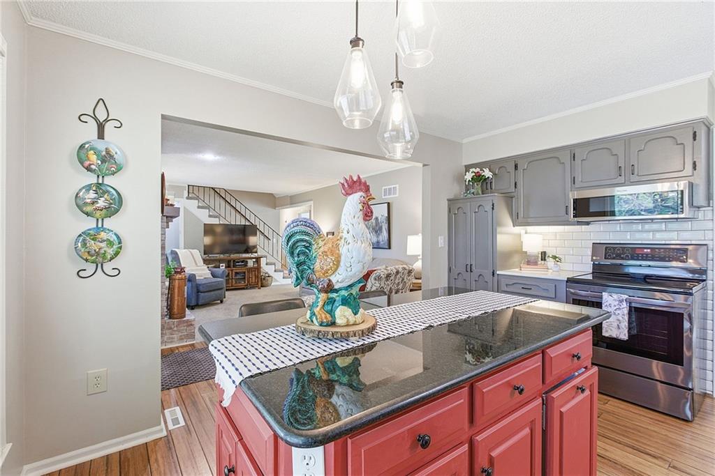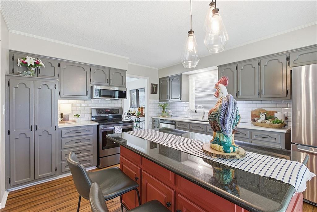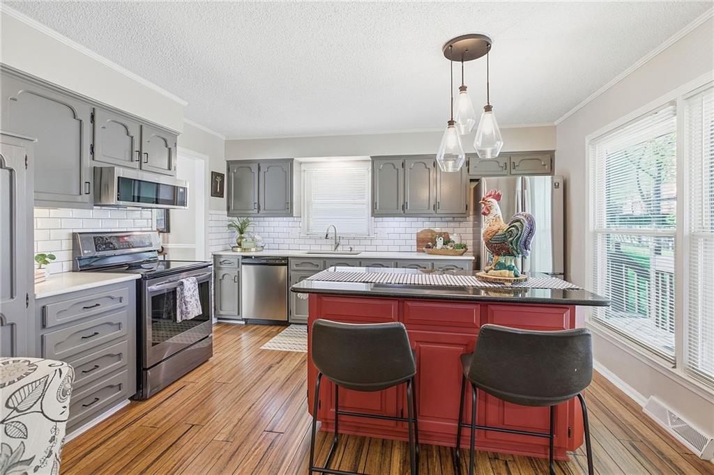 If you're searching for move-in ready, look no further! You’ll be greeted by charming curb appeal and beautiful landscaping as you arrive at this inviting 4-bedroom, 2-bath, raised 1.5-story home. Step inside to find a meticulously maintained and thoughtfully updated interior. The main level features fresh paint, a spacious living and dining room with warm bamboo floors and abundant natural light. A cozy family room with a gas fireplace seamlessly connects to an updated kitchen boasting stainless steel appliances, sleek countertops, and a kitchen island. The main-level primary suite includes a private ensuite bath, complemented by two additional generously sized bedrooms and a second full bathroom. Upstairs, a large fourth bedroom provides versatile space ideal for guests, a home office, or a private retreat. Downstairs, the lower level offers even more room to spread out—perfect for recreation, hobbies, or work-from-home needs—along with access to the rear-entry two-car garage. Step outside to enjoy the beautifully landscaped, fenced backyard. The two-tiered deck is ideal for relaxing or entertaining, and the charming shed adds both character and extra storage. Enjoy added peace of mind with major system updates—both the HVAC and water heater were replaced just six months ago, offering efficiency, reliability, and long-term value. Great location close to schools, parks, dining, shops, and highway access. This home truly has it all!