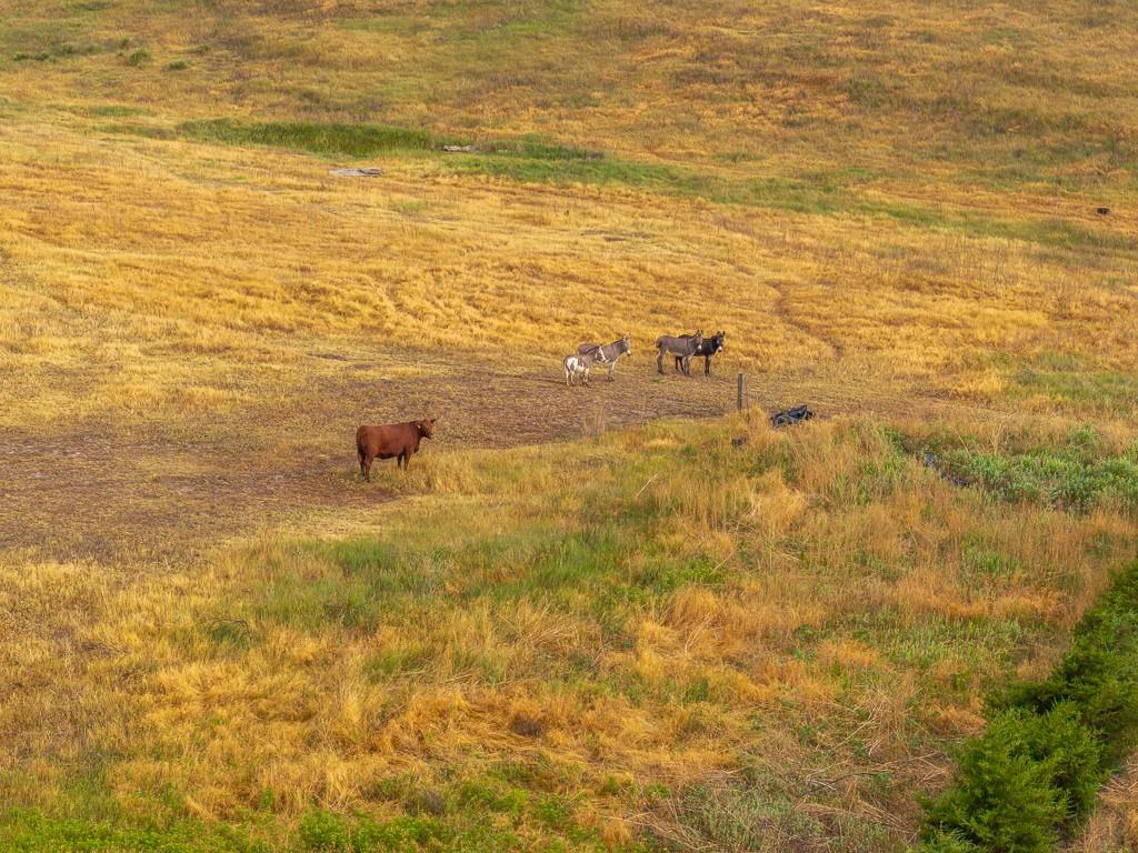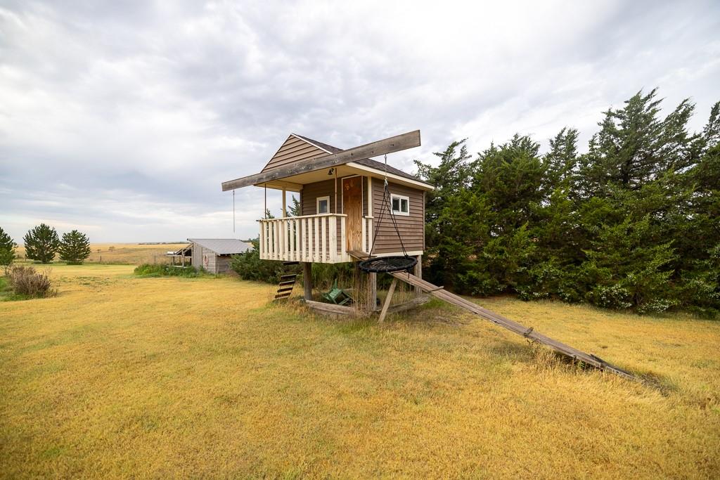 This beautiful 48 +/- acre property brings a lot to the table! Located just west of the golf course outside of Hoxie, KS, it features a sizable 5 bed, 2 bath ranch farmhouse. You can watch the sun rise from your front porch. The main floor includes 2 bedrooms, 1 bathroom, a generous living area and kitchen, large dining room, and a laundry/mudroom off of the oversized 2 car garage. The full finished basement includes 3 bedrooms, a full bathroom, utility closet, a large living space, and lots of storage. The property also includes an additional 864 square foot outbuilding that is half garage and half climate controlled entertaining space, perfect for a mancave. A chicken coop and children's playhouse make up the remaining structures on the property. The property itself is beautiful and loaded with opportunity. A large established windbreak surrounds the north and west sides of the home, offering the much needed protection from the Kansas winds. Additionally, oak and cottonwood trees are strategically placed throughout the farm, giving it a charming, park-like feel. There are several water hydrants sprinkled throughout the 5 acre homesite that would allow several locations for a large garden. The remaining 43 acres are made up of fenced grass that are perfect for your horses, steers, or other livestock options. There’s a good well and heated water tank just off of the corral.