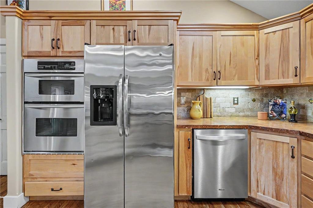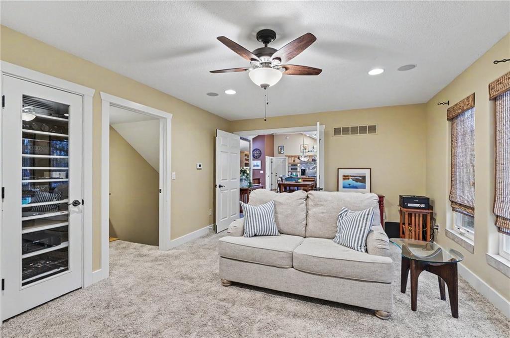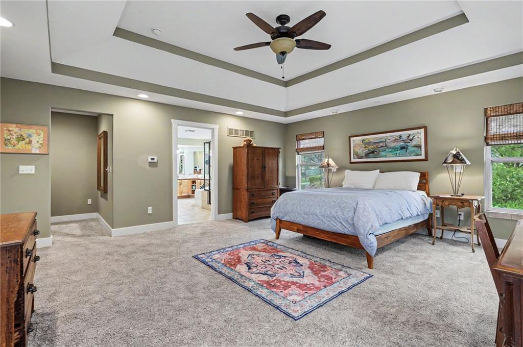 You will never see another home like this one. The sellers orchestrated a $130k remodel when they moved in. They removed the kitchen/living room ceiling and vaulted it up to the skylights. Main level primary bedroom is probably the largest in this price range with a backyard water feature right outside the window on SW corner going out to Lawrence Country Club golf course. 2BR on the main level and 2 upstairs. Basement is partially finished and used as a wine room with outside stairwell with plenty of space to finish off however you wish. Home sits on a corner lot with direct access to the backyard that is an oasis. Come check out this very unique home.