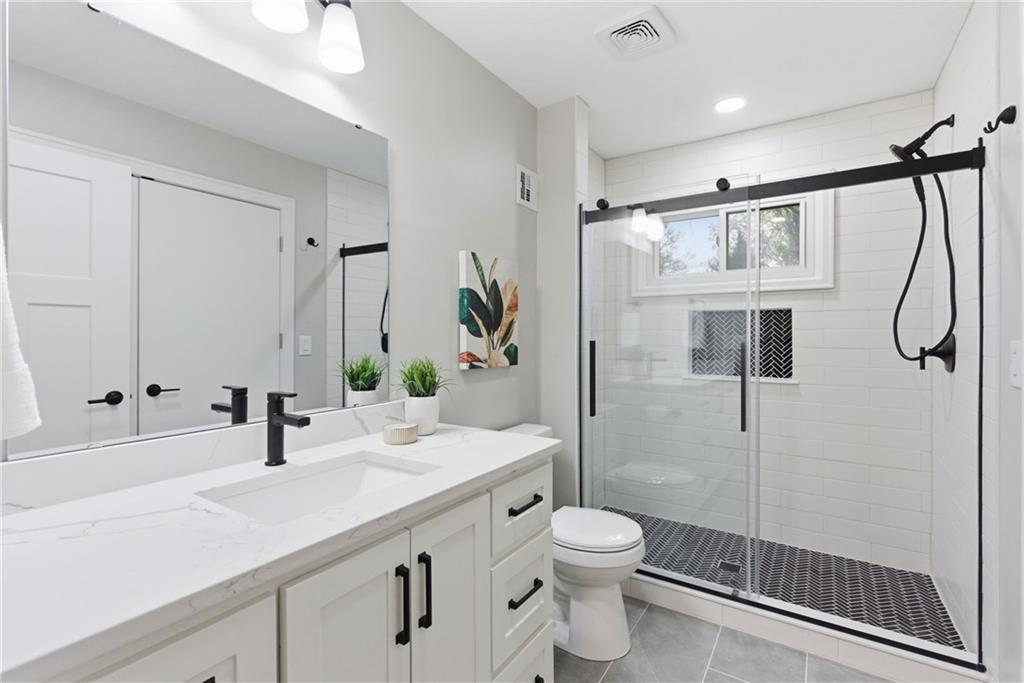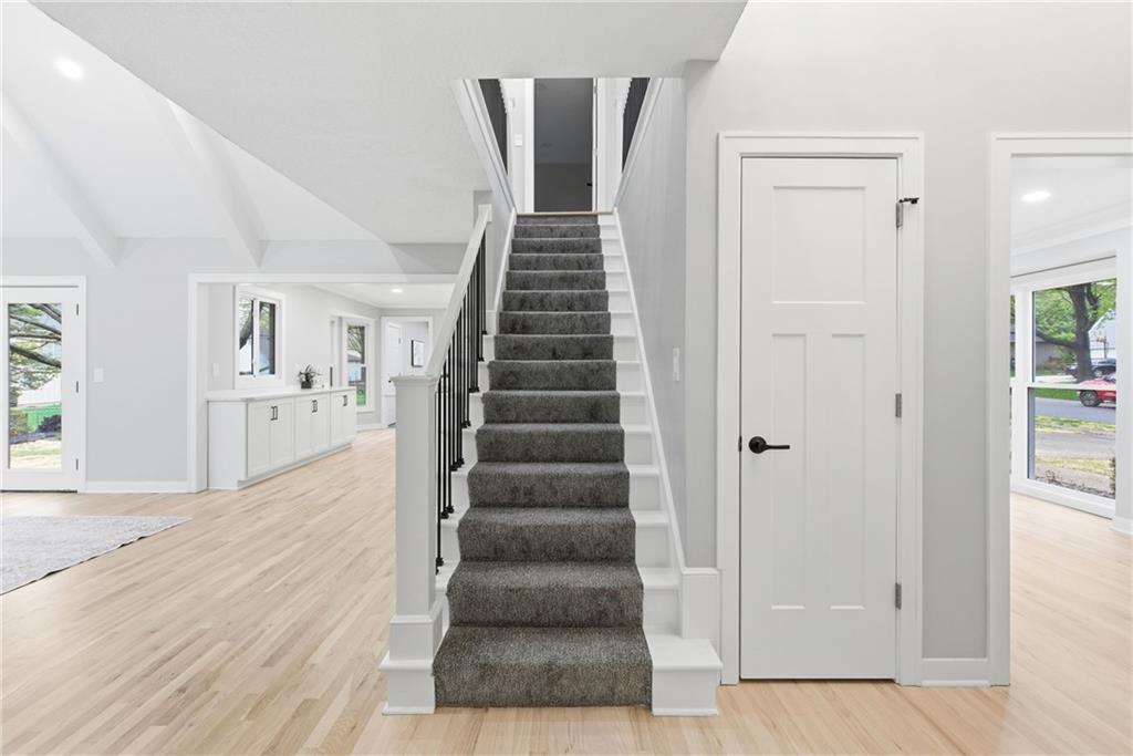 Professional pics coming soon. Welcome to your dream family home in the heart of Leawood, perfectly positioned within the highly sought-after Blue Valley school district, feeding into Leawood Elementary, Leawood Middle School, and Blue Valley North High School. This stunningly transformed residence promises spacious living, making it an ideal retreat for larger families seeking both comfort and luxury. As you enter, you'll appreciate the thoughtfully designed open floor plan that harmonizes functionality with elegance. The chef's kitchen features exquisite custom craftsman-style cabinetry, quartz countertops, and stainless steel appliances—all overlooking a bright and airy living room adorned with soaring vaulted ceilings. The main level also includes a luxurious primary ensuite bedroom, providing a private oasis complete with a spa-like bathroom. A second well-appointed bedroom and full bath cater to guests or family, and the newly designed mudroom offers convenient access from both the garage and the expansive stamped concrete back patio, perfect for outdoor entertaining. Venture upstairs to discover two spacious additional bedrooms, a full bath, and a huge loft living space, ideal for family game nights or a kids play area. The lower level is an entertainer's dream, featuring yet another ensuite bedroom, an additional bedroom and bath, a dedicated media room complete with a wet bar, and a private office space for remote work or study. The exterior of the home boasts a fresh look, with beautiful new lap siding on the front, enhancing its curb appeal, while the remaining three sides feature elegant stucco. The property has also been meticulously enhanced with new landscaping, and freshly applied seed and fertilizer, ensuring a lush green space for children to play and family barbeques to enjoy.