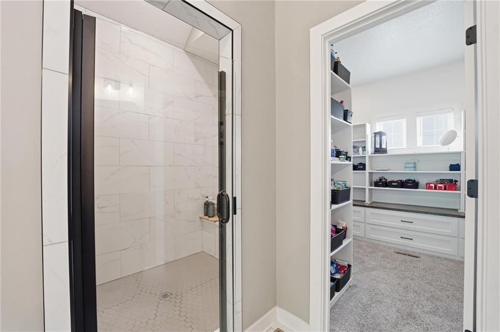 This Integrity Homes, Audrey 1.5 story plan is located on one of the best lots in the subdivision and is only 2+ years old. This home has it all, the floorplan, the closet space, the views and the workshop, it's a must see for sure. The main floor is expansive with tall and vaulted ceilings, open concept dining, living room and kitchen with a larger than typical front entry. The primary bedroom suite is located on the main floor with a beautiful view of the wooded area behind the home. Upstairs features a loft providing a second living area in addition to three more bedrooms. Two bedrooms are part of a jack-and-jlll suite with their own private vanities, and the third bedroom has a private bathroom. BONUS: every bedroom has spacious walk-in closets so nobody has to compromise! The basement is partially finished with a fifth bedroom and fourth bathroom, and an exercise room. RARE FIND: this home features a 3-car suspended garage making a great space for workshop or additional storage. Private walkout lot backing to the trail, oversized fenced lot. Why wait for new construction when everything is already done! Save the overages!