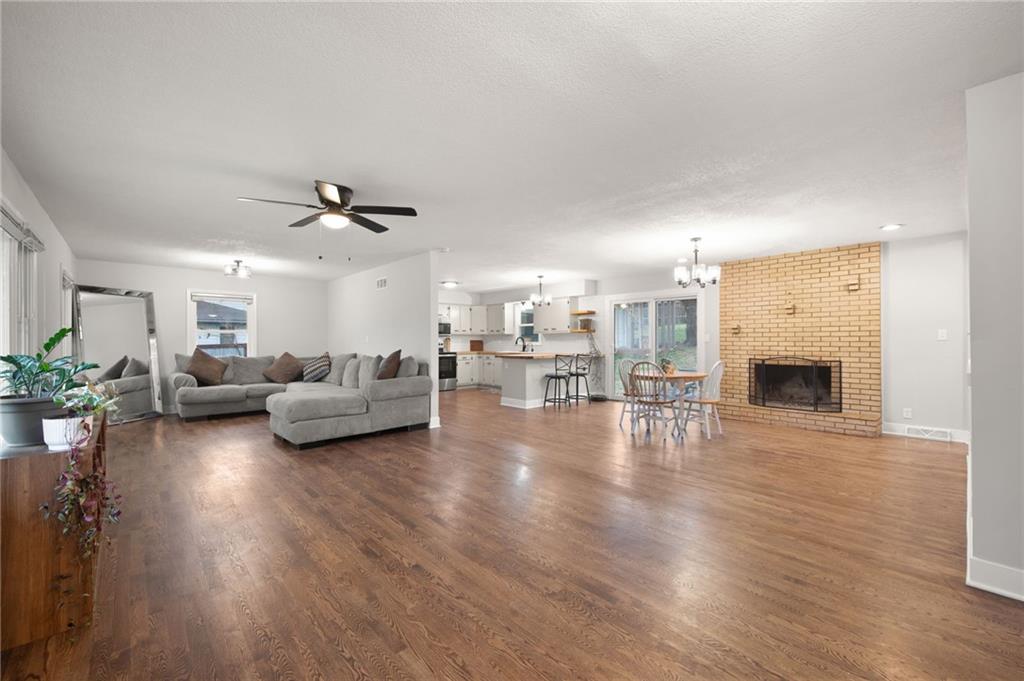 Thoughtfully updated and move-in ready, this raised ranch offers the space, layout, and modern touches today’s buyers are looking for. With updates throughout, the home blends a classic layout with fresh finishes, creating an easy, comfortable feel from the moment you walk in. The main level features three bedrooms, including a primary suite with a fully updated bathroom and walk-in tiled shower, along with an additional updated hall bath. The spacious family room flows into the dining area, anchored by a brick fireplace that adds warmth and character, all opening naturally to the kitchen. The kitchen has been refreshed with new countertops, updated finishes, and new appliances — making it both functional and inviting for everyday living and entertaining. Additional updates include flooring, doors, trim, fixtures, and bathrooms, giving the home a clean, cohesive look throughout. Along with all new siding. The lower level adds even more living space with a second fireplace, full bathroom, and a flexible area perfect for a second family room, office, or guest space. You’ll also find the laundry area and direct access to the attached two-car garage for added convenience. With multiple living spaces, solid updates, and a layout that just works, this home is ready for its next owner to move in and enjoy.