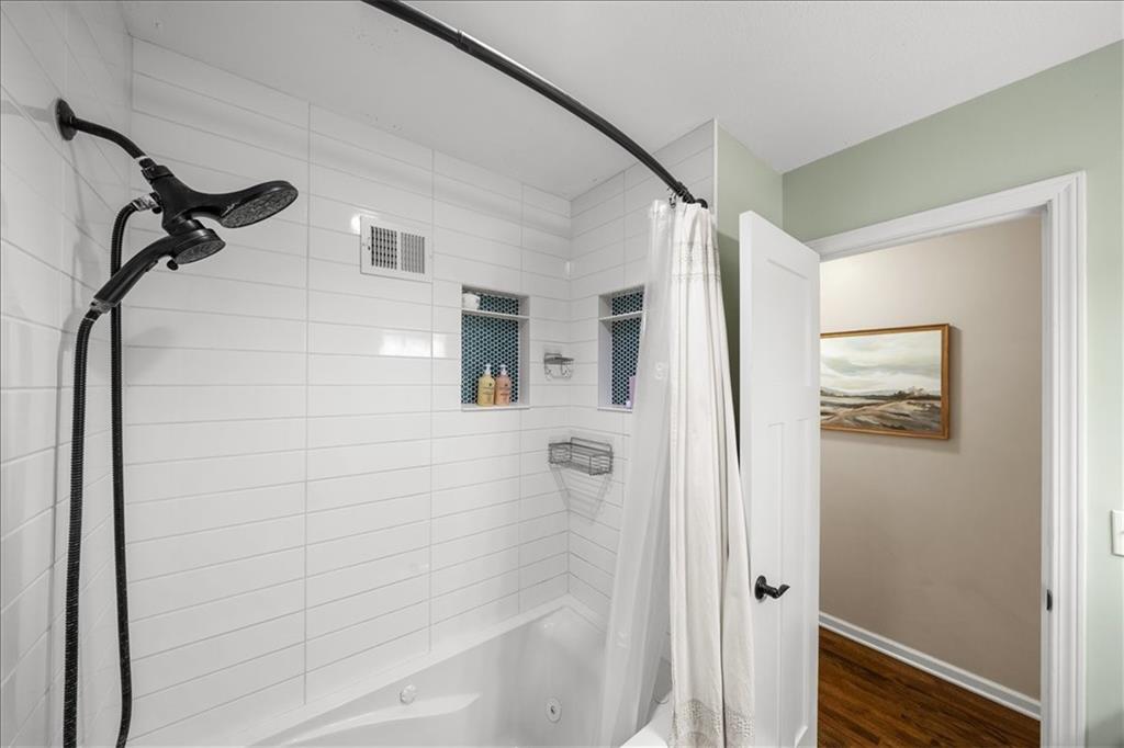 This stunningly updated Overland Park home offers luxury in one perfect package! Every detail has been thoughtfully designed, allowing for a true move-in-ready experience. Step into the spacious living room featuring a large bay window that fills the space with natural light and highlights the gorgeous hardwood floors extending throughout the main living and bedroom areas. The chef’s kitchen is a showstopper, boasting custom cabinetry with specialty pullouts, a pantry, granite countertops, marble backsplash, farmhouse sink, built-in oven and microwave, and an induction cooktop. The adjoining dining room features a stylish accent wall that adds modern charm. Double doors lead to a freshly stained, oversized deck—ideal for seamless indoor-outdoor entertaining. Upstairs, two generous secondary bedrooms share a beautifully updated hall bath with a custom vanity, marble tile, and a heated jetted tub/shower combination. The primary suite serves as a relaxing retreat, complete with yet another accent wall, custom closet organizer, and a stunning ensuite bath featuring tile, a modern vanity, and a lighted mirror. All fixtures, ceiling fans, interior doors (solid core), exterior doors and recessed light have been tastefully updated. The family room offers another comfortable living space with a floor-to-ceiling fireplace, perfect for cozy evenings. The recently finished basement provides a flex area ideal for an office, gym, craft room, or playroom with a large bar and additional storage in unfinished area. An extra-deep two-car garage offers even more storage or workshop space and includes an electric car charger. Other highlights include a *New Roof*, newer vinyl windows, maintenance-free siding, and a fully fenced large yard. Located in a prime OP neighborhood, this home offers easy access to shopping, dining, schools, parks, and highways. Do not miss this rare opportunity to own a move-in-ready home with exceptional upgrades in one of JOCO most desirable areas!