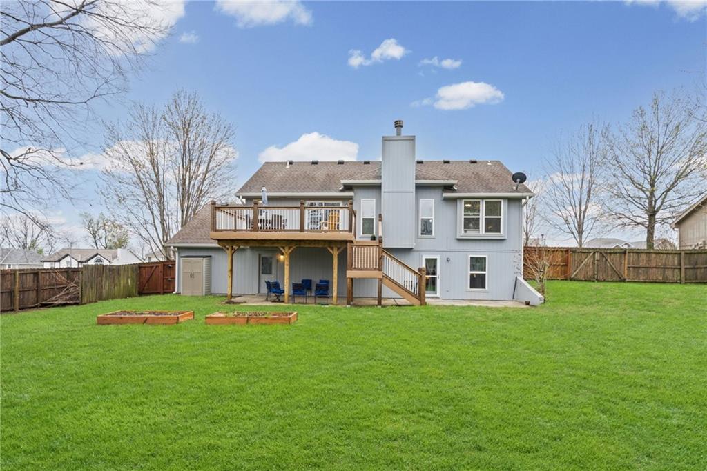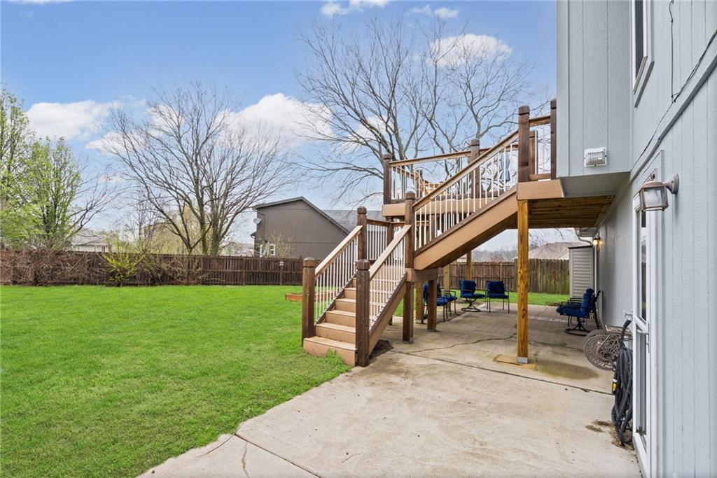 Beautifully maintained, energy-efficient home located just minutes from Smithville Lake in Harbor Lake. Features include a whole-house water filtration system, newer HVAC, and enhanced insulation and a security system for added peace of mind. Enjoy the expanded composite deck plus an extra-large patio underneath, perfect for additional outdoor living space. The fully fenced backyard with 6-foot privacy fence adds both security and comfort. The updated kitchen includes LG appliances (only 5 months old). Spacious 3-car garage offers excellent built-in storage plus a dedicated 220V outlet for electric vehicle charging. Additional storage room above the garage provides extra space. Conveniently located one block from the community pool, with walking trails and lake access nearby, and just 1 mile to the Smithville Lake boat ramp.