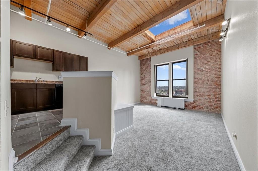 TOP FLOOR STUDIO with incredible skyline views. Welcome to your modern rustic escape above the city at the iconic Soho Lofts. This loft is the ultimate urban lifestyle, blending character, style, and not to mention the location into one unforgettable space. Step inside and you’re immediately greeted by soaring 15-foot ceilings and an abundance of natural light pouring in, creating an open, airy feel that instantly feels like home. The thoughtfully designed layout features a raised kitchen, exposed beams, and beautiful brick walls that bring warmth and texture throughout. Additional highlights include a skylight, all-electric living, and a versatile pull-out queen trundle bed, perfect for maximizing your space. Enjoy access to an impressive lineup of amenities, including a rooftop deck with stunning views, fitness center, sauna, club room, and multiple laundry facilities (one conveniently located on the 4th floor). Several amenities, including the gym, laundry, and club room are currently being renovated. Step outside and experience true convenience of local favorites like The Glam Room and The Phoenix Jazz Club, with easy access to the River Market, Crossroads District, Power & Light District, the highly anticipated Rock Island Bridge, and the KC Streetcar. Covered garage parking is available for lease through Denison Parking with direct building access, starting at $140/month, with additional nearby options available. Storage units may also be available through the HOA. Soho Lofts allow 30+ day rentals, making this not only a stunning place to live but also a strong investment opportunity. This is loft living at its finest, light, bright, full of character, and located in the heart of everything Kansas City has to offer.