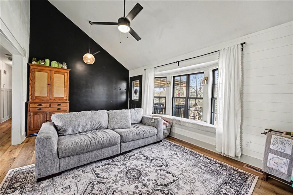 Tucked at the end of the street, this split-entry offers an open main level with living, dining, and kitchen space, vaulted ceilings, great natural light, and a cozy sitting nook. Fireplace with built-in shelving creates a warm focal point in the living area. Kitchen includes a farmhouse sink, stainless steel appliances, and charming accents throughout. Bedrooms and baths are well laid out for everyday living. Finished lower level adds additional living space—ideal for a second living area, rec room, or flex space, plus a tucked-away nook under the stairs currently used as a kids’ play area. Large garage offers extra room for storage, hobbies, or workspace. Situated on a generous lot with room to spread out, including a fire pit area. Roof approximately 10 years old; HVAC serviced in 2025.