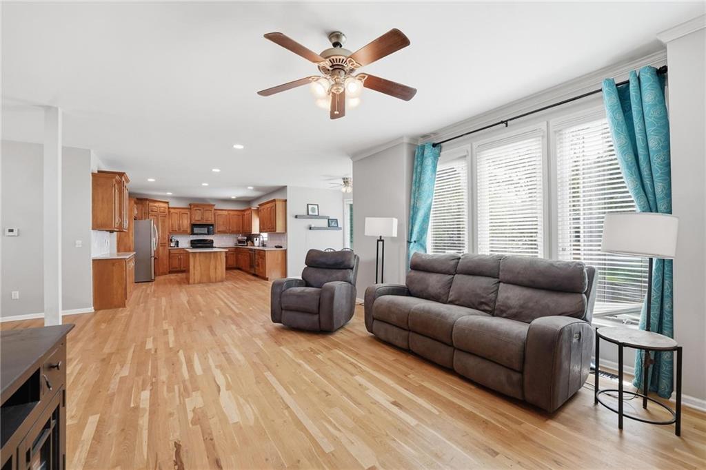 Welcome to this light-filled two-story home in highly sought-after Johnson County, ideally located in Olathe, Kansas! From the moment you enter the bright, open two-story foyer, you’ll appreciate the spacious and functional floor plan designed for modern living and entertaining. The main level features a formal dining room and an expansive great room that flows seamlessly into the kitchen, complete with granite countertops, a center island, walk-in pantry and stylish picket tile backsplash—perfect for hosting gatherings or everyday convenience. Upstairs, the oversized primary suite offers exceptional flexibility with room for large furniture or a private sitting area, along with a spa-inspired en-suite bath featuring a corner soaking tub, dual vanities, tiled shower, and generous layout. The daylight lower level provides additional living space ideal for movie nights, a game area, or a home office, plus a fifth non-conforming bedroom with closet and full bath—perfect for guests. Enjoy outdoor living in the level, fenced backyard. Conveniently located near top-rated Olathe schools, shopping, dining, and easy highway access, this Johnson County home combines comfort, space, and prime location—making it a must-see for buyers searching in the Olathe area.