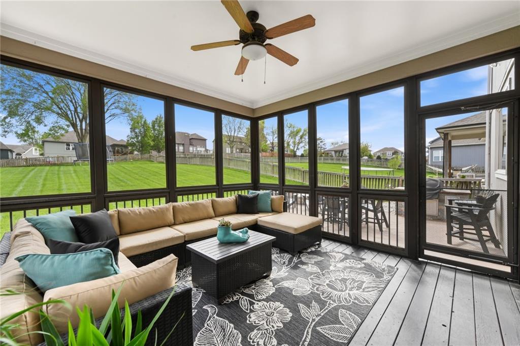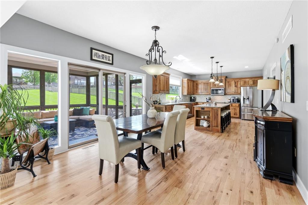 Stunning 5+Bedroom Home in Lee's Summits Premier Lake Community – Raintree! Welcome to your dream home in the highly sought-after Lake community! This beautifully designed 5+bedroom, 4.5-bathroom, 2-story home offers almost 4,000 square feet of luxurious living space and is perfectly situated with views of the pristine Backyard Oasis. Step inside to find rich hardwood floors flowing throughout the main level and an open-concept floorplan filled with natural light. The gourmet kitchen features elegant cabinetry, granite countertops, a spacious island, and a walk-in pantry—ideal for both daily living and entertaining. The expansive lower-level recreation room is the ultimate gathering spot, complete with a stylish wet bar—perfect for game nights or hosting guests. After a long day, relax on the screened-in, covered deck while taking in the peaceful outdoor living area. You can continue to entertain and enjoy a wonderful day or evening in the oasis backyard with a firepit and outdoor kitchen. With 5+ spacious bedrooms, including a luxurious primary suite, and 4 full bathrooms plus a convenient half bath, there’s room for everyone to spread out and feel right at home. Raintree Lake isn't just a neighborhood—it’s a lifestyle. Enjoy access to top-notch amenities including a clubhouse, pool, lake, fitness center, and more. Don’t miss this rare opportunity to own an incredible home in one of Lee's Summits finest communities. Schedule your private showing today!