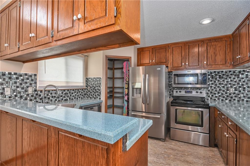 This 3-bedroom, 4-bathroom home in Raytown offers a unique blend of character, space, and functionality with a layout that stands out from the typical cookie-cutter design. From the moment you arrive, you’ll notice the inviting curb appeal, spacious driveway, and attached two-car garage. Inside, the home opens up to a bright and airy main living area featuring vaulted ceilings, warm wood accents, and a striking fireplace that anchors the space. Large windows and sliding glass doors bring in natural light and create an easy connection to the backyard, making the main level feel open and welcoming. The kitchen offers plenty of cabinet storage, generous counter space, and a functional layout that flows seamlessly into the dining area—ideal for everyday living or hosting guests. Just off the main living space, you’ll find well-sized bedrooms, including a primary suite setup, along with multiple bathrooms that provide flexibility and convenience for a variety of living situations. Downstairs, the home continues to deliver with additional living space perfect for a second family room, recreation area, or home office setup. With four bathrooms total, there’s no shortage of functionality throughout the home. Step outside to a fenced backyard with room to relax, entertain, or make your own outdoor vision come to life. If you’re looking for a home with solid bones, distinctive style, and room to personalize, this Raytown property is one worth seeing in person.