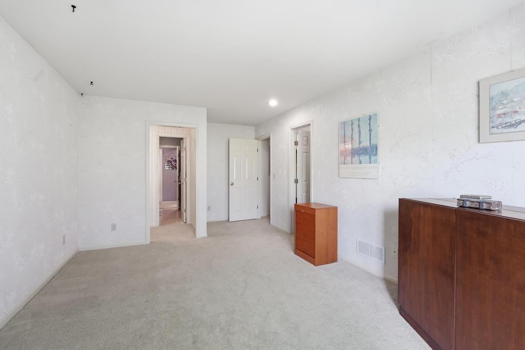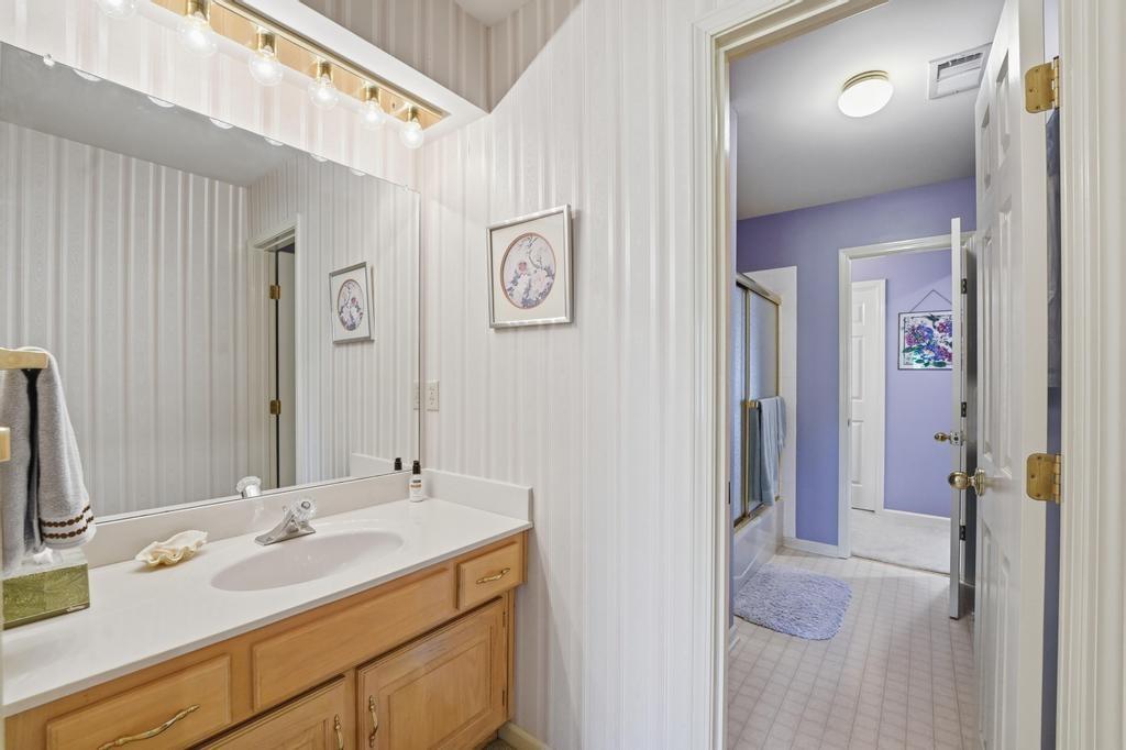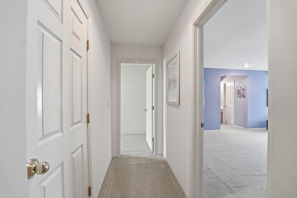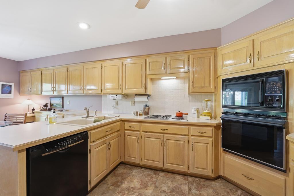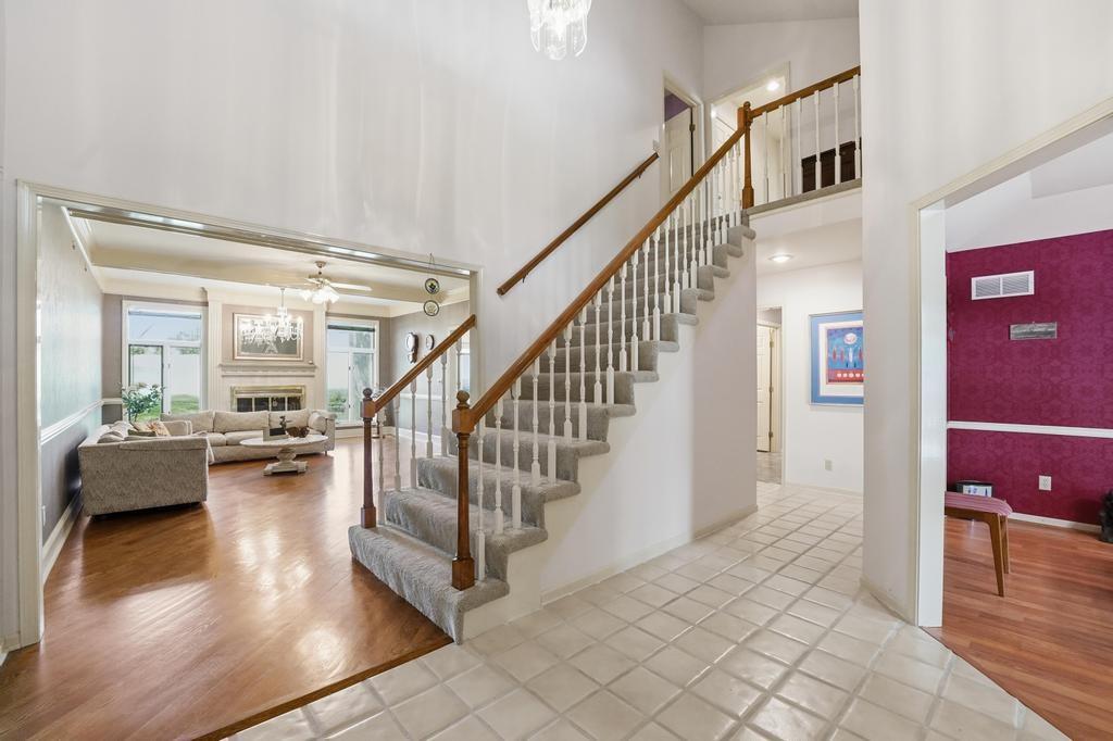 This Wellington Green townhome backs to green space/Blue Hills Country Club Golf Course. It is one of the larger homes in the subdivision and it feels so spacious! The main level has a gorgeous, bright, big living room with a fireplace, floor to ceiling windows, and hardwood floors. Next you walk into a sitting room/den with a wall full of windows and the same beautiful hardwood floors. The kitchen has plenty of cabinets and counter space and room for a small breakfast table overlooking the composite deck and golf course. A formal dining room, half bath, and laundry round out the main level. Upstairs you will find three SPACIOUS bedrooms. The primary bedroom has room for a sitting area, right in front of the fireplace. The ensuite bathroom has heated tile floors, a big whirlpool tub, double sinks, and a shower. The other two bedrooms share a jack and jill bathroom. The basement is finished into a large rec room with ceramic tile. There is also a full bathroom in the basement. All this home needs is your decorator's eye to make cosmetic updates! The home is being sold as-is. Inspections welcome. The fridge, washer, and dryer all stay.