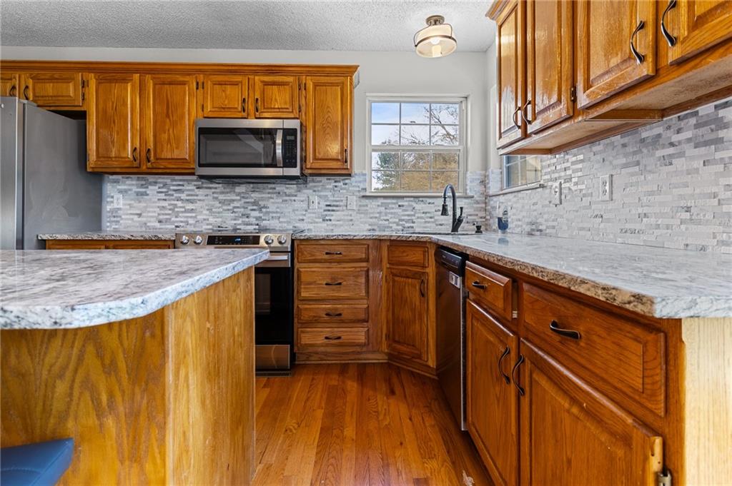 You'll immediately fall in love with this tri-level floor plan offering the perfect blend of open-concept for entertaining and bright, airy beauty! The formal living room, lower level family room and kitchen/dining area are flooded with natural light. The kitchen is perfect for entertaining friends or everyday meals. Ample cabinet space and tons of granite countertops, including an island that provides additional seating. The Primary Bedroom features an ensuite bath and vaulted ceilings, while the additional bedrooms are generously sized and provide space for family, guests, a home office or craft room. The fenced backyard boasts a flat green space that makes yard work a breeze! This layout ensures every square foot serves a purpose while providing the distinct separation of space you crave. Don't let this home pass you by. Schedule your showing TODAY!