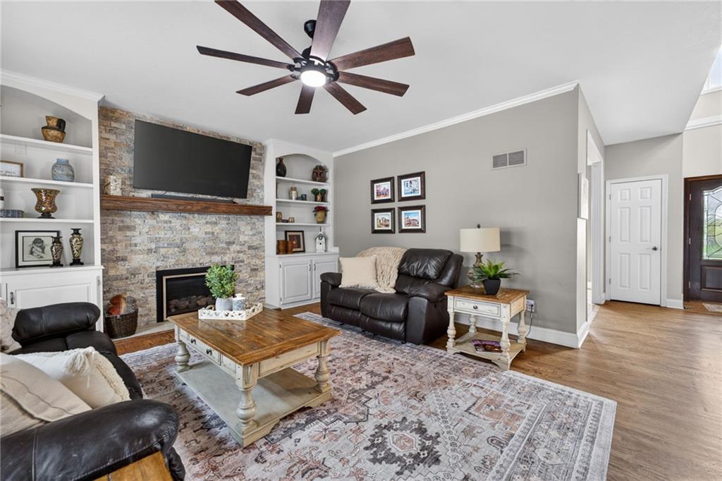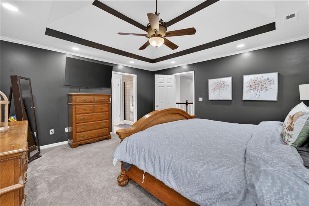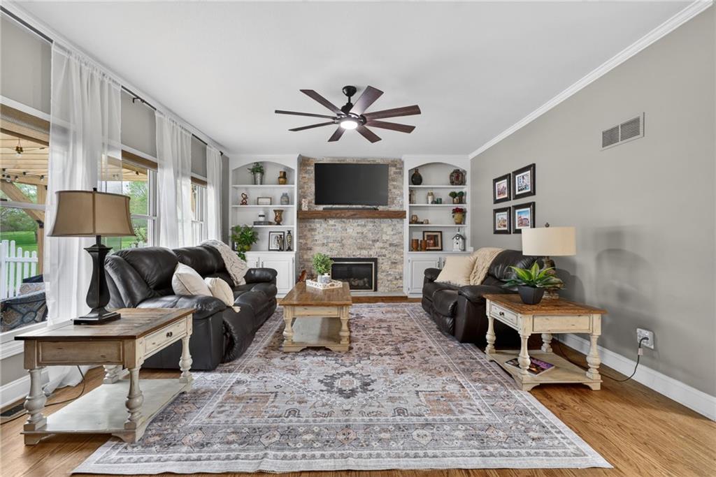 Welcome to your private slice of paradise—this stunning 5-acre property offers the perfect blend of comfort, functionality, and natural beauty. Surrounded by mature, picturesque trees, the setting provides both serenity and privacy, creating a peaceful retreat you’ll love coming home to. At the heart of the property sits a beautifully updated four-bedroom home, thoughtfully designed with both everyday living and entertaining in mind. Each spacious bedroom features its own attached bathroom and walk-in closet, offering comfort and convenience for family and guests alike. In addition, two versatile flex rooms provide endless possibilities—a secondary office, fitness space, hobby room, or even additional non-conforming bedrooms. Step outside and discover a true outdoor oasis. Enjoy warm days by the sparkling inground swimming pool or relax under the charming pergola on the inviting back patio—perfect for hosting gatherings or unwinding in the evenings. The scenic fishing pond, complete with its own dock, adds a tranquil touch. For those needing extra space, the large outbuilding is complete with a finished shop that includes an additional bathroom area. The shop is fully insulated, sheeted, has lots of storage, and a propane heater. This one-of-a-kind property combines modern updates, flexible living spaces, and exceptional outdoor amenities, set within a beautifully treed landscape, all within minutes of shopping, restaurants, and amenities.