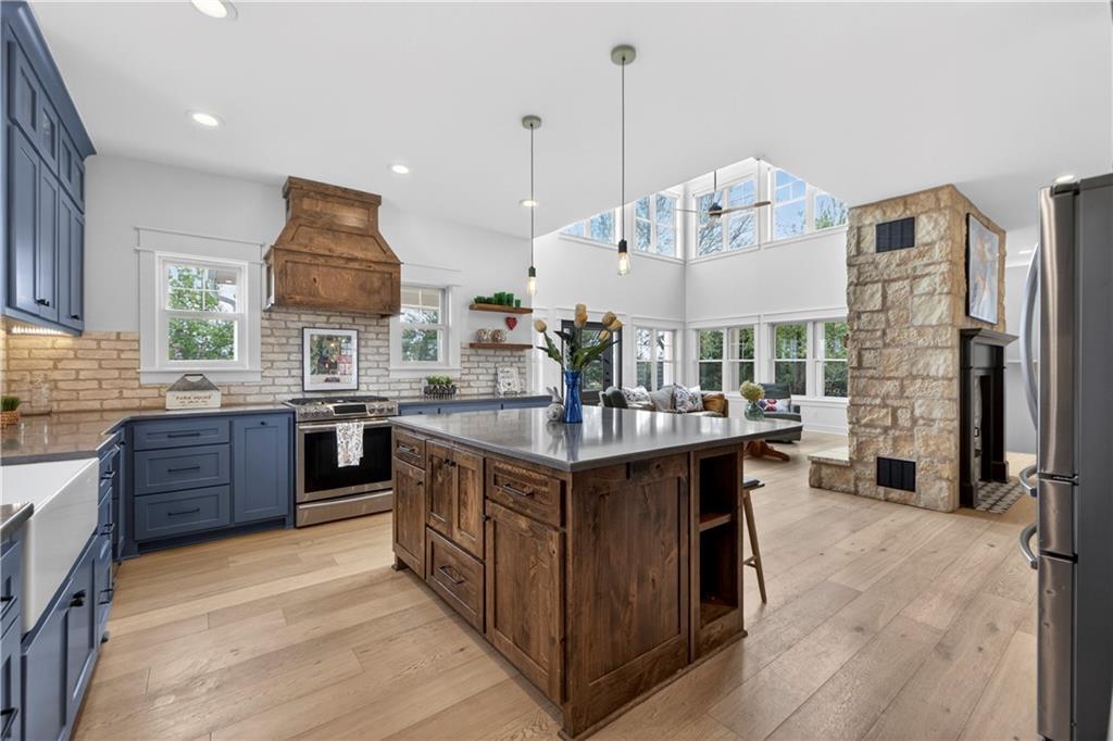 10 acres on blacktop — a rare blend of modern comfort and full-function hobby farm living. Built in 2020 as the sought-after builder’s personal residence, this open-concept home offers 6 bedrooms, 3.5 baths and 4,032 total sqft with thoughtful finishes throughout. Main living features include a dramatic two-story great room with abundant windows, wide-plank white oak engineered floors, a see-through fireplace between the dining room and living room, and a chef-ready kitchen flowing to living and entertaining spaces. The primary suite is conveniently located on the main level and opens to a large screened porch that, together with the dining room, leads out to an expansive concrete patio — ideal for indoor-outdoor living. Two oversized bedrooms upstairs include vanities/sinks plus a full upstairs bath; three additional bedrooms are located below grade. Practical comforts: main-level and basement laundry, an oversized two-car garage, and a large finished six-sided concrete storm shelter. Outdoor and outbuilding amenities are built for hobby farmers, equestrians, and weekend hosts. Approximately 2.5 acres are fenced and improved with a horse barn that has power and water. The back 5 acres serve as productive hay pasture. The 2,400 sqft barn/shop includes a 1,600 sqft insulated, heated & cooled shop space with two overhead doors and a full bath, plus an 800 sqft one-bedroom apartment with kitchen/living area, full bath, W/D hookups and a wraparound covered porch — perfect for rental income, guest quarters, or on-site help. Additional property highlights: chicken coop with power, water and indoor/outdoor access; raised-bed garden area with water run; a 33-ft above-ground pool with deck and awning for summer entertaining; and abundant acreage for riding, gardening, or expansion. Location is exceptional — just one mile from the new elementary school in the award-winning Basehor-Linwood School District.
