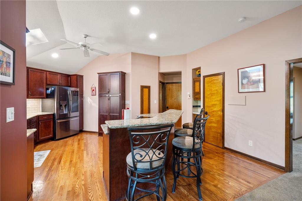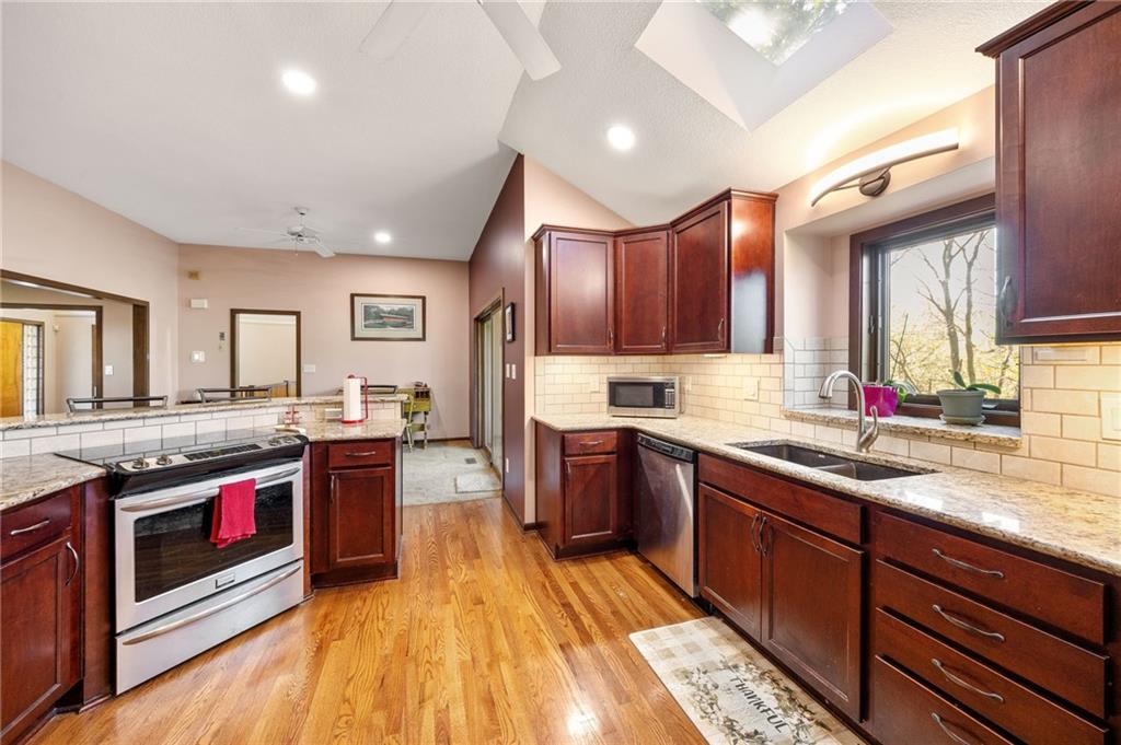 If you’re searching for a truly exceptional home, 7206 Larson is it. Tucked quietly at the end of a small horseshoe street in a quiet neighborhood, this custom-built 1.5 story reverse ranch offers unmatched seclusion and character. Built in 1992 and perfectly maintained, this rare opportunity sits on a beautifully wooded 1.6-acre lot that feels like your own private nature sanctuary. With 4 bedrooms, 3 full baths, and 2 half baths, there’s plenty of space to entertain and unwind. The open flow connects the living area, dining room, and kitchen while vaulted ceilings and large windows showcase sweeping views of the park-like backyard. Step outside to enjoy two decks overlooking mature trees and wildlife — deer, turkey, and birds are frequent guests. A custom treehouse, completed in 2022, adds even more charm and a sense of retreat. The primary suite on the main level features a remarkable en-suite bath designed for two, with dual vanities, dual water closets, separate walk-in closets, and a shared jetted tub and walk-in shower connecting the spaces. Down the curved staircase, discover a lower level built to impress — an indoor atrium with turf and stone accents opens into a spacious family room with a gas fireplace and three additional bedrooms surrounded by private wooded views. Ample storage and thoughtful design make every corner functional and inviting. Recent updates include a new Air Conditioning unit (2025), tankless water heater, water softener, toilets, faucets (2021), kitchen upgrades (2018), and garage resealing (2020). This home stands as one of the most unique and well-kept properties in the area. Also to note the property is in close proximity to the Rock Island Trail. Rarely does a home blend craftsmanship, privacy, and location like this. Schedule your private showing today before this extraordinary home is gone.