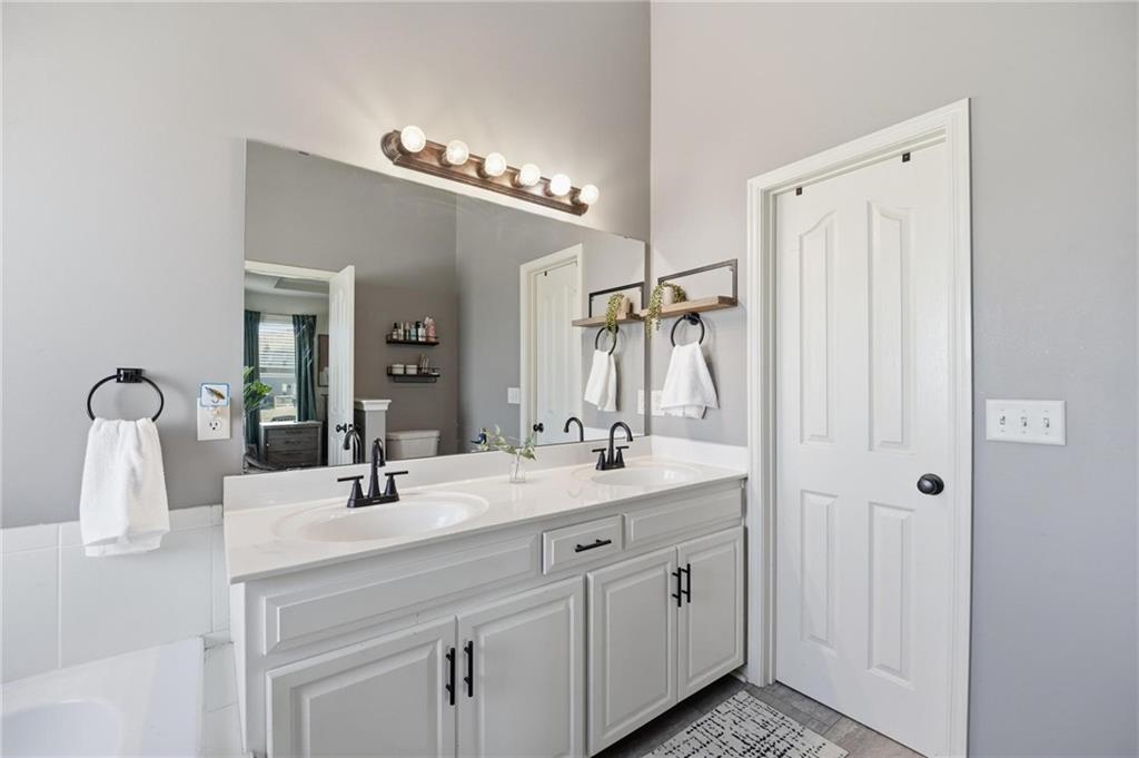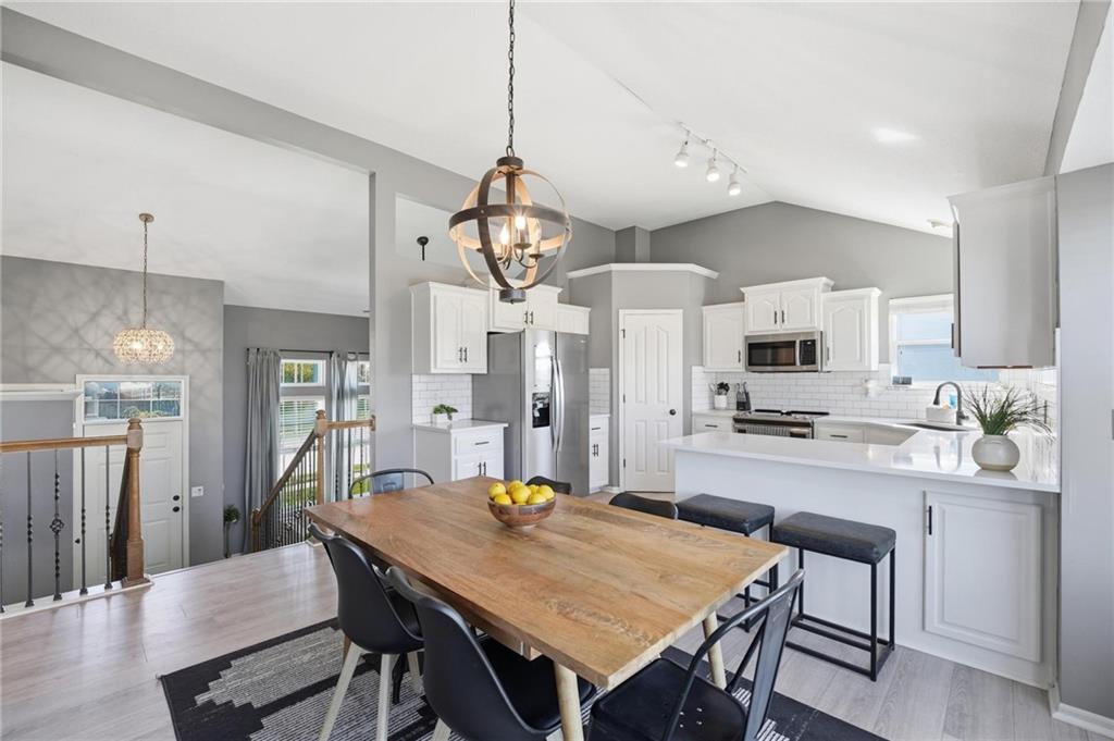 Welcome to Genesis Place at Green Hills! This front to back split welcomes you into a large living room with vaulted ceilings, beautiful windows and a refinished fireplace. Upstairs the renovated kitchen takes center stage with quartz countertops and painted cabinets, opening into a home filled with newer flooring throughout. This home also offers updated bathrooms and a 3-car garage along with a subbasement perfect for storage, a workout area, or flex space. The spacious primary suite features a large jacuzzi tub, double vanity, and walk-in closet. Out back, the yard truly steals the show with a basketball court, playground, deck, and extended concrete patio complete with a retractable awning—ideal for both relaxing and entertaining. Curb appeal is no problem here with the newly installed flower bed retaining walls in both the front and backyard. Last but certainly not least, a NEW ROOF is coming soon!