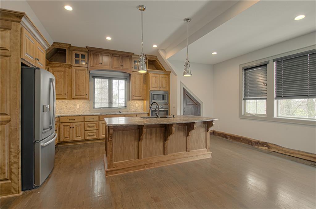 Looking for resort-style living on an acreage lot that Backs to Mature Timber with a true Scenic view… From the moment you arrive, you’re welcomed by a sense of space, privacy, and quiet luxury that’s increasingly hard to find, This One-of-a-kind Custom Built Reverse 1.5 home offers an Open Main Level Design with Sunlight that pours through the oversized windows, Elegant Box Beam Ceilings, highlighting rich architectural details while multiple gathering spaces create a natural flow for hosting on any scale. A gorgeous Chefs Kitchen, Refinished Hardwoods, New Lighting, Private Master Suite on Main with all new carpet, new tile in the spa like master bath & giant walk-in closet. Fabulous Screened-in sunroom and large office. Oversized 4-Car Garage with new floors .Downstairs, a fully finished lower-level transforms into an entertainer’s dream. With 3 Bedrooms, 2 and a half baths ,a Bonus Room, Wine Cellar, finished Rec Room, Second Kitchen area, and wait until you see the Full Suspended Slab Storage/Workout space! The lower level offers space for additional rooms. Step outside and the lifestyle continues. The Carriage home (detached garage) built in 2015 offers additional living space and work space! The main level hosts a 4 car tandem garage space and a half bathroom . Upstairs is a full living space with a Gorgeous kitchen, Granite oversized island, custom cabinets, Full bathroom ,W/D, Bedroom, large closets with extra storage, loft space, and lower level host an amazing theatre room ready for more entertaining and another full bathroom. Additional storage and another garage space! With a full outdoor oasis for the grilling connoisseur waiting for you! This home has been painted inside and out, freshly landscaped, new sprinkler system installed. Just minutes from shopping and restaurants .A rare opportunity to own a true estate experience in one of the Northland's gated communities.