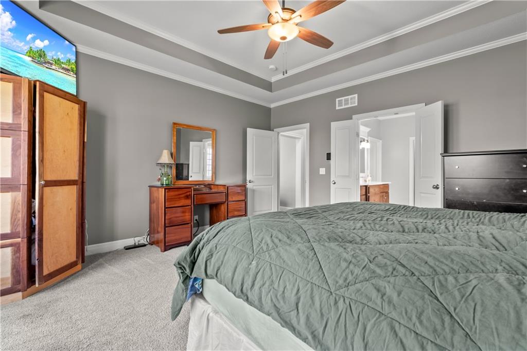 Welcome to this beautifully maintained 1.5-story home in the sought-after Dalton’s Ridge neighborhood! This spacious 4-bedroom, 3.5-bath home features an open floor plan perfect for both everyday living and entertaining. The gourmet kitchen is a standout with ample counter space and a walk-in pantry, seamlessly flowing into the main living areas. The private primary suite on the main level offers a peaceful retreat, separate from the rest of the home. A dedicated office suite on the main level provides the perfect work-from-home setup. Upstairs, you’ll find three additional bedrooms, two full bathrooms, a versatile loft space, and a media room—ideal for movie nights or game days. Fresh interior paint throughout gives the home a bright, updated feel, and new carpet will be installed for the next owner on the stairs and 2nd floor