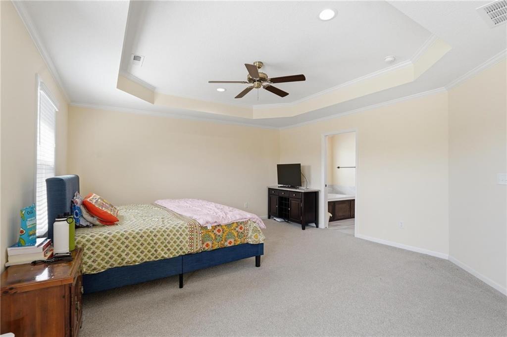 This stunning custom Landon II 2-story home offers a perfect blend of modern elegance and functional design within the prestigious Willows community. Situated in a prime location within the top-rated Blue Valley School District, this residence sits on a desirable walk-out lot with a sought-after east-facing orientation, ensuring an abundance of natural sunlight throughout the day. The main level features an expansive open floor plan highlighted by a Great Room with a gas fireplace, a gourmet kitchen equipped with a large island and walk-in pantry, and a sun-drenched dining area. This thoughtfully designed layout includes four full bathrooms, with one conveniently located on the main level. Upstairs, the luxurious master suite serves as a private retreat with a tray ceiling, dual vanities, a soaking tub, and a massive walk-in closet. Three additional spacious bedrooms ensure comfort for the whole family. Outdoor enthusiasts will appreciate the nearby nature trails, while the covered deck, three-car garage, and unfinished walk-out basement provide exceptional utility and room for future expansion.