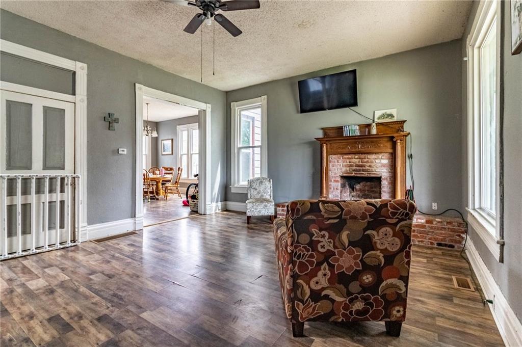 Beautiful 4 bed, 1.5 bath two-story home full of timeless character, ideally located just five blocks from downtown Windsor. Enjoy relaxing on the large wraparound covered front porch, perfect for morning coffee or evening unwinding. Inside, you’ll find newer replacement windows that flood the home with natural light, highlighting the original window and baseboard trim that showcase its authentic charm. The living space features a stunning original brick wood-burning fireplace, adding warmth and classic appeal. The kitchen offers beautiful solid wood cabinetry and a window that brings in even more natural light, creating a bright and inviting space. The property also features a convenient driveway with alley access, offering added functionality and ease of entry.