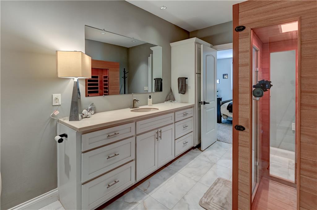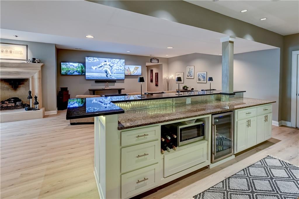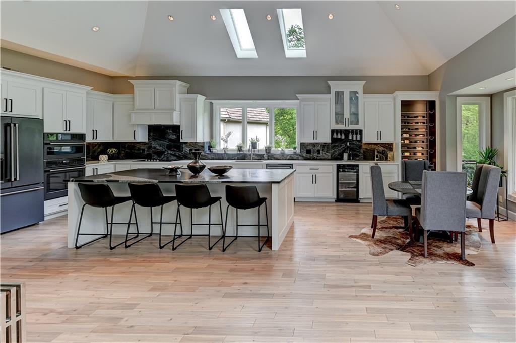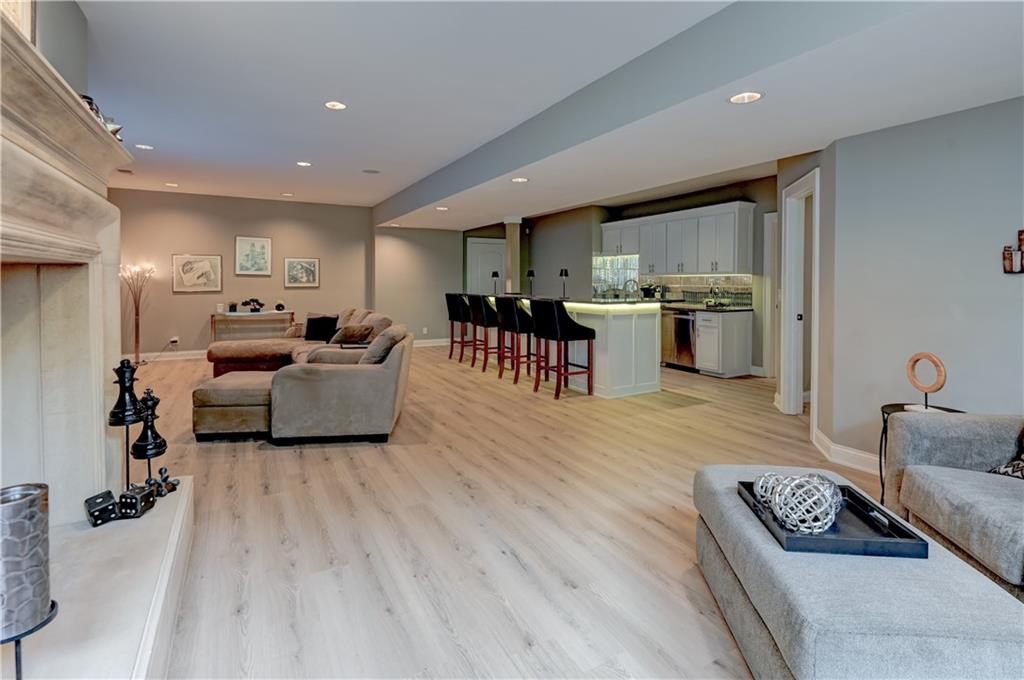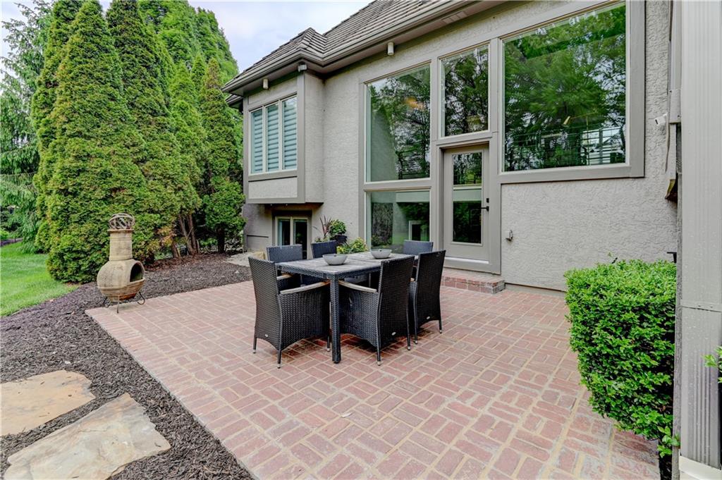 Unique opportunity to own a beautifully updated villa in the prestigous, gated community of Linden Place. The prime location is close to all amenities in Overland Park and Leawood. Step into the light filled space with high ceilings, handblown glass chandelier, large fireplace and beams that will take your breath away with the views of the green space through endless windows. The all new open kitchen boasts custom cabinetry to include coffee/tea bar, cocktail bar with wine cabinet, wine fridge, spice and trash pullouts, quartz countertops and leathered granite on the oversized island. Large pantry provides additional abundance of storage. High end appliances with the latest technology make for a dream kitchen. , Main level luxurious primary suite offers a huge walk in closet with built-ins, custom large low entry shower and free standing tub. Office/sitting room with additional large windows overlook the quiet cul-de-sac. Laundry room with sink has many cabinets for additional storage. Screened in tech deck provide windows galore for more light and overlooks the serene, private backyard. The fenced community offers secured access to the walking/biking trails and park that back to the home. Additional outdoor patio space provides ample room to expand your living space. Lower level opens to the large windows with a large family/rec room, oversized wet bar including dishwasher, pullout trash, beverage and full size refrigerators. Two large guest suites include walk in closets, large windows and infared sauna. Enjoy time in the movie theatre with relaxing power seats and custom glass cabinet for the full experience. Large storage space is secured by concrete walls and steel roof for added safety. Schedule an appointment before you miss this opportunity!