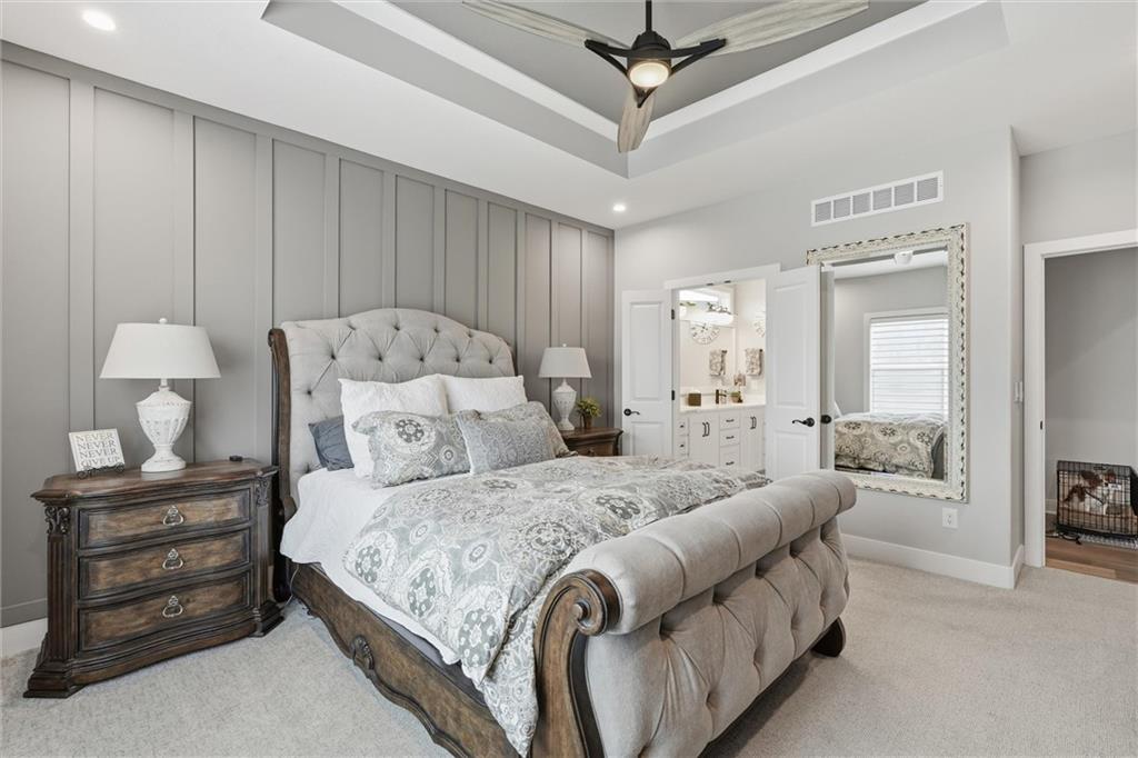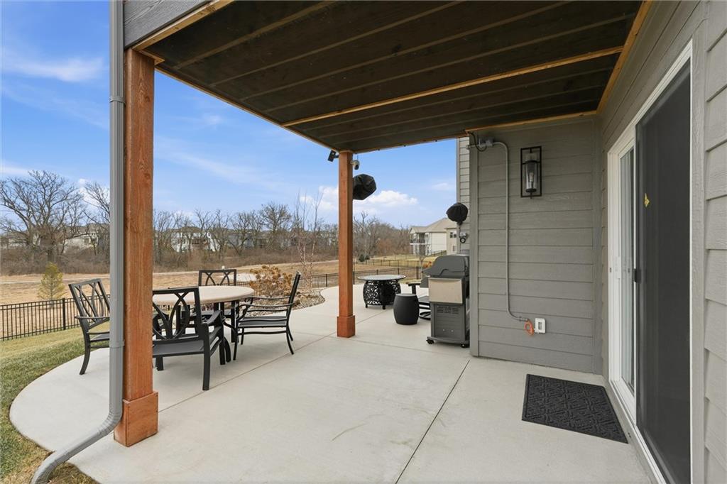 Tucked into desirable Phase 1 of Cadence Villas, this exceptional home offers a premium setting backing to green space with a nearby walking trail—providing privacy without sacrificing access to the outdoors. The walkout lower level extends seamlessly to a beautifully landscaped backyard featuring natural rock walls, mature trees, curated plantings, and designed pathways. Enjoy year-round outdoor living from the screened-in deck, extended patio, and fully fenced yard. Inside, the home is loaded with upgrades that enhance both style and function. The exterior features durable horizontal lap siding and a full-house Zip System for efficiency and weather protection. Interior highlights include upgraded lighting, board and batten accent walls, an oak picture shelf in the dining area, and a striking stone fireplace. The kitchen is equipped with high-end GE Café smart appliances, including a dual fuel range, convection microwave, dishwasher and French door refrigerator—ideal for entertaining. Additional features include 42” soft-close cabinetry, a Silgranite sink, matte black fixtures, and a built-in buffet with tile to the ceiling. Comfort continues with an ADT security system, premium window treatments, upgraded ceiling fans, and enhanced low-voltage wiring. Storage is maximized with custom closets, a Gladiator garage system, basement shelving, and a lit workbench. The garage also includes a 50-amp RV plug. Additional upgrades include hardwood flooring on the main level, LVP in the basement, upgraded carpet, enhanced bath cabinetry, elongated toilets, and a termite protection system. A rare opportunity to own a beautifully upgraded home in one of Cadence Villas’ most desirable locations. HOA dues are $650/year plus $200/month.