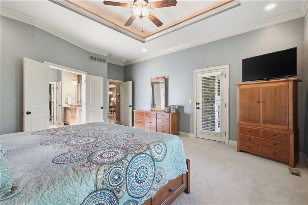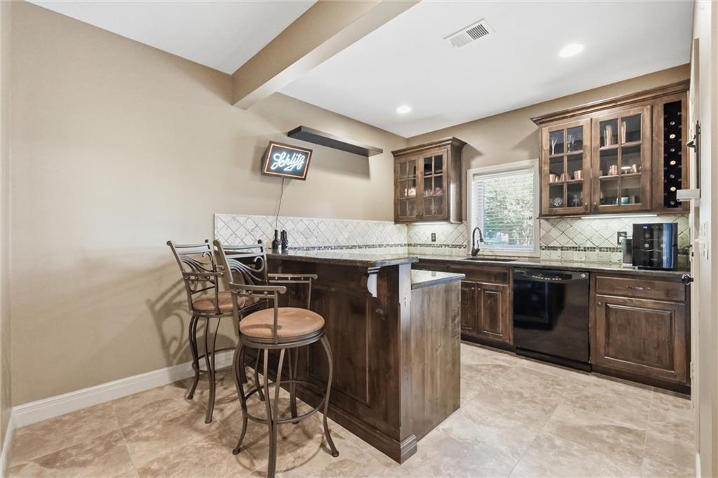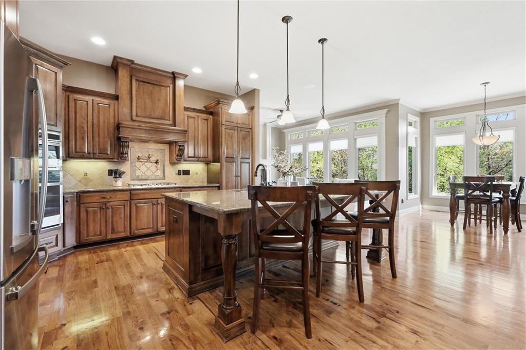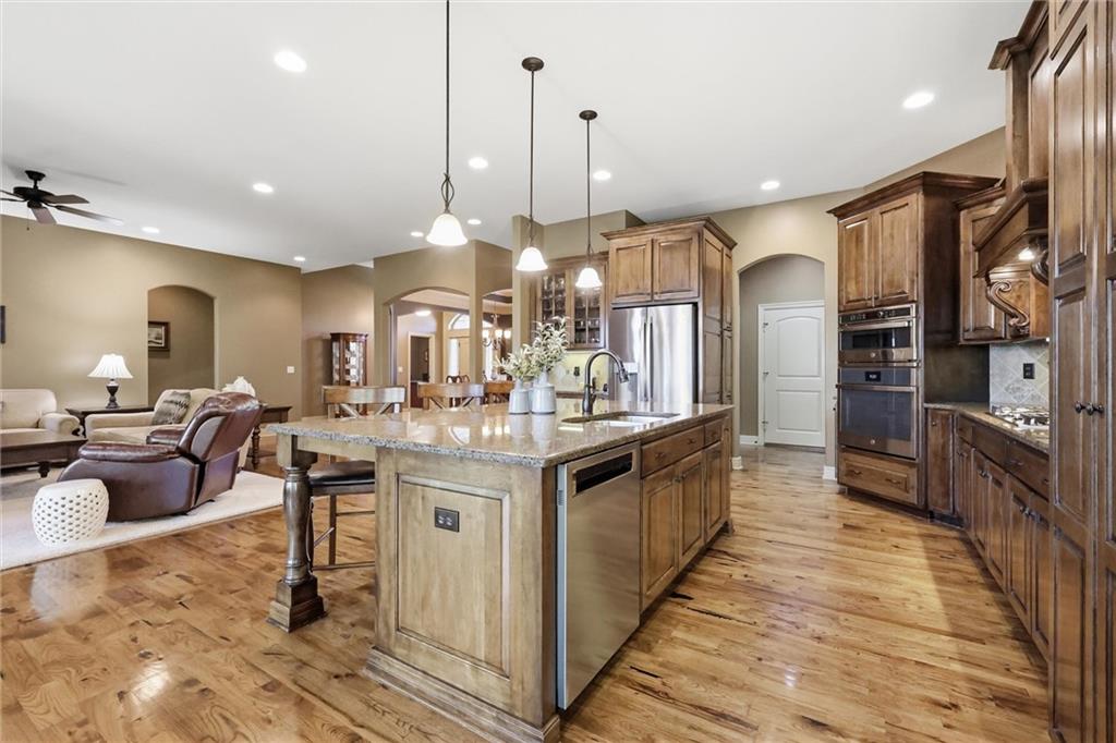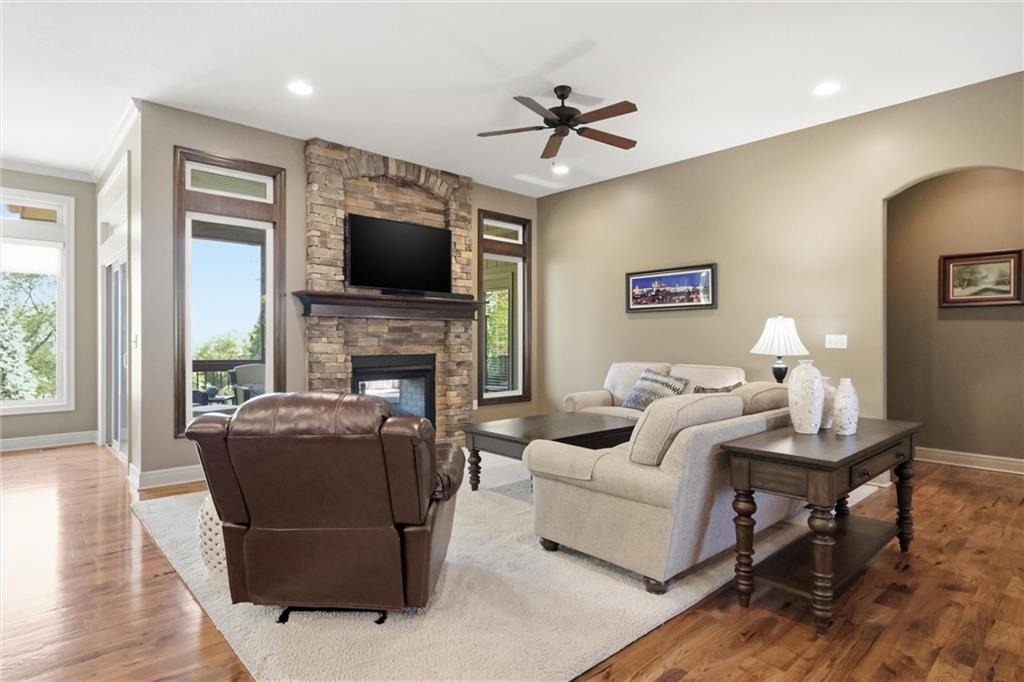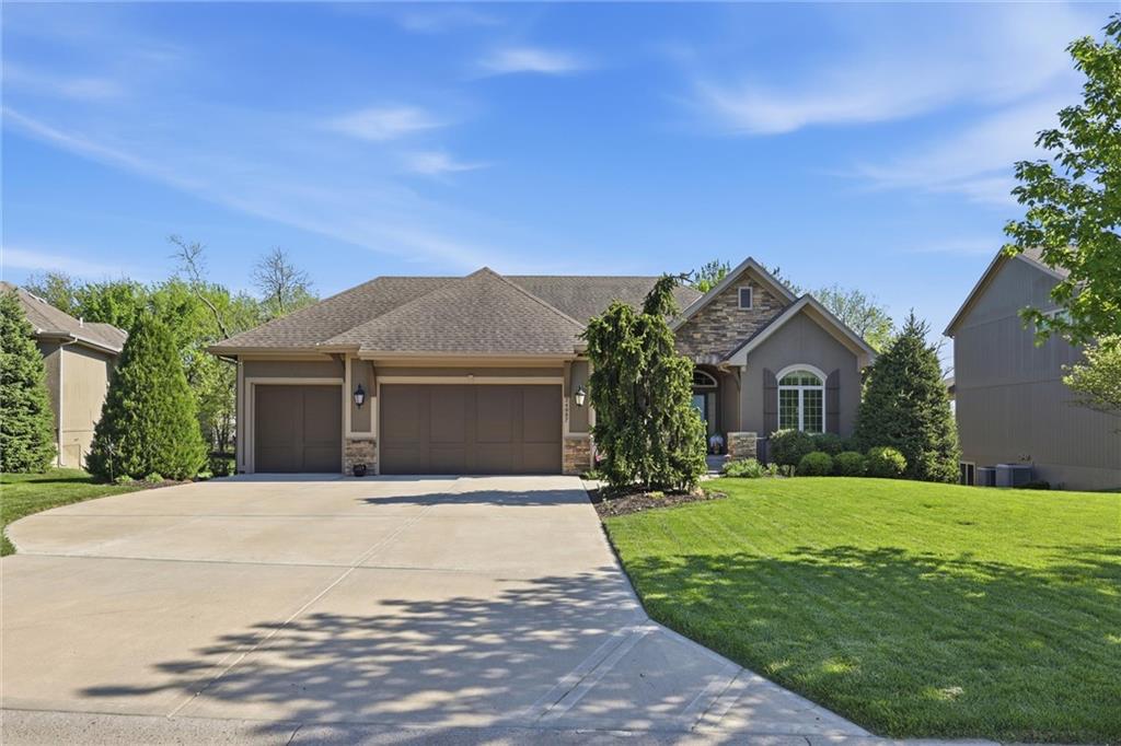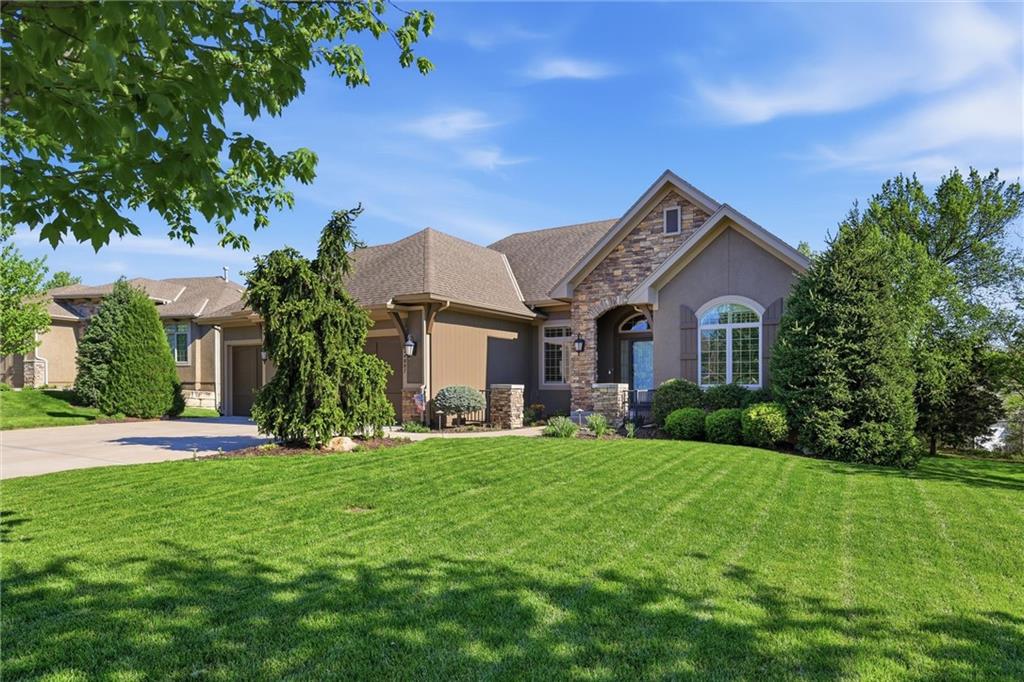 Don’t miss this beautifully maintained home designed for both everyday living and exceptional entertaining. Every bedroom features its own full bathroom, offering comfort and privacy for family and guests alike. The heart of the home is the stunning kitchen, complete with stained wood cabinetry, stone countertops, stainless steel appliances, a large island, and a walk-in pantry. The open layout flows seamlessly to the screened-in deck, where you’ll find a see-through fireplace with space for a TV—perfect for cozy evenings or hosting friends. The main level also offers a versatile second bedroom or office, along with an oversized laundry room for added convenience. The spacious primary suite is a true retreat, featuring a tray ceiling, private deck access, a large walk-in closet, and a luxurious en-suite bathroom with a soaking tub, separate shower, and double vanity with ample storage. Downstairs, the finished walkout basement is built for entertaining, complete with a fireplace, game room area, and a wet bar with stained cabinetry, sink, and dishwasher. Two additional bedrooms and two full bathrooms provide even more living space. Step outside to enjoy the extended patio, thoughtfully designed with an outdoor kitchen area, fire pit, and beautifully finished ceiling detail over the covered patio. The backyard also features professional landscaping and a tranquil water feature. The home is even prepped for a hot tub hookup. Car enthusiasts and hobbyists will appreciate the oversized three-car garage with a staircase leading directly to the basement. This home has been exceptionally cared for and is truly move-in ready—an incredible opportunity for its next owner.