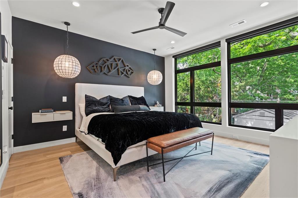 Discover this stunning custom-built home in the heart of Kansas City's sought-after West Plaza neighborhood. With an unbeatable location just minutes from Westport, The Country Club Plaza, and the Nelson Atkins Art Museum, this 2022 Artisan Home is an entertainer's dream. The exterior features gas lanterns, stucco, and a glass garage door with powder coated black metal framing, providing ample off-street parking with a three-car garage. Inside, you'll find 7-inch white oak hardwood floors, custom-fabricated steel railings, and Restoration Hardware light fixtures throughout. The second level includes a kitchen with inset walnut cabinets, hidden appliances, and stunning azul quartz countertops from Italy, leading into the main living area with an 80-inch gas fireplace and floor-to-ceiling charcoal concrete. The dining room features a 24-foot vaulted ceiling and large windows with electric blinds. The home offers multiple outdoor spaces, including concrete patios, a privacy-fenced backyard, and a 200-square-foot rooftop deck with views of the Country Club Plaza. With two primary suites, a potential fifth bedroom, and a top-floor movie theater with a soundproofed entertainment area, this home truly has it all. Freshly painted interior. Sellers are willing to include the home theatre equipment with an acceptable offer. Don't miss your chance to own this masterpiece in West Plaza.